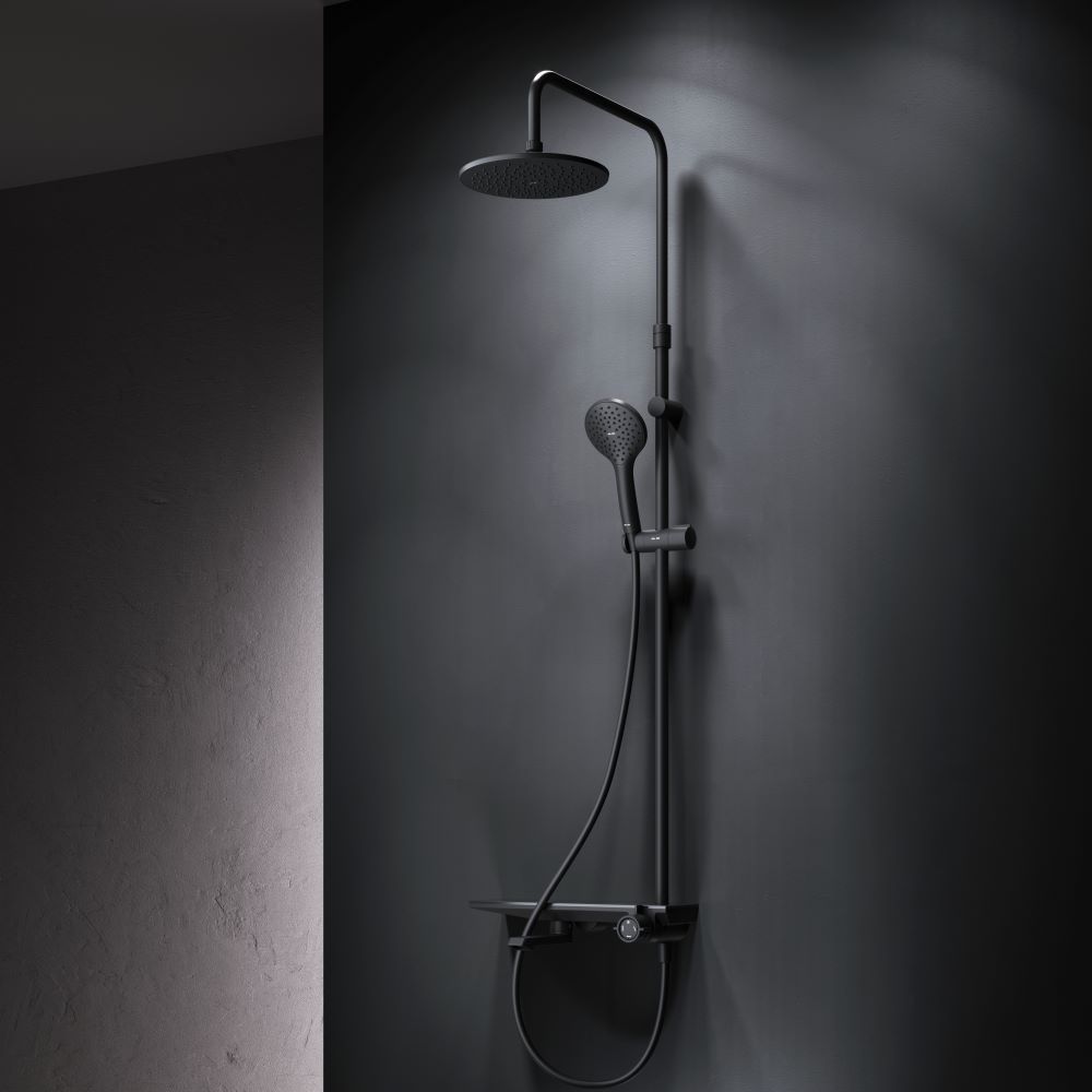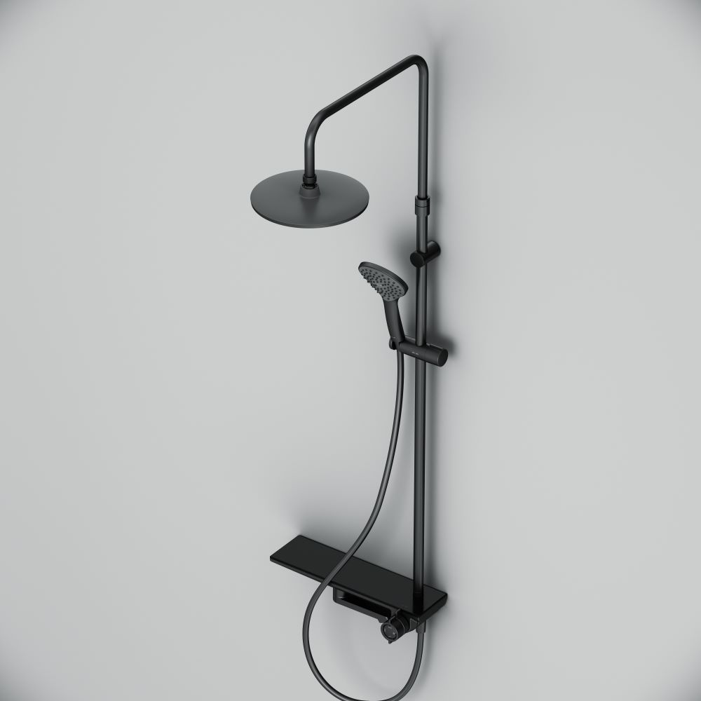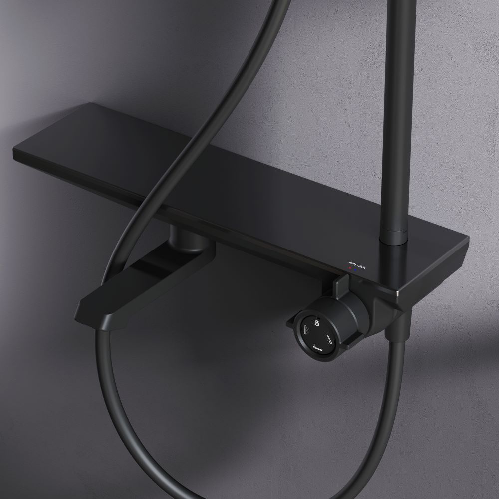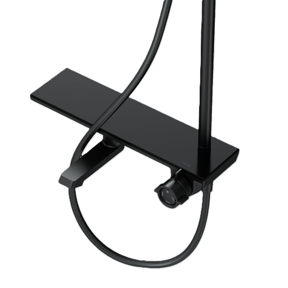 Исключительная инновационность: смеситель выполнен в виде полочки на которой так удобно хранить необходимые аксессуары для душа. Картридж смесителя является эксклюзивной разработкой бренда. Переключение потоков находится на одной оси с регулировкой температуры. При вращении против часовой стрелки из положения «Выключено» вода с увеличением напора подается в ручной душ. При вращении по часовой стрелке из положения «Выключено» вода с увеличением напора подается в верхний душ. Вода в поворотном изливе включается поворотом из положения «Выключено» на 180? в любую сторону. ""