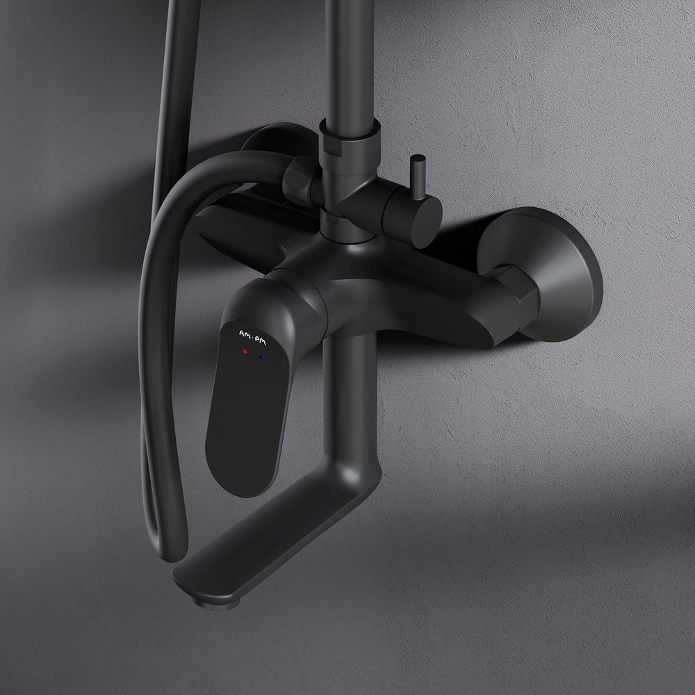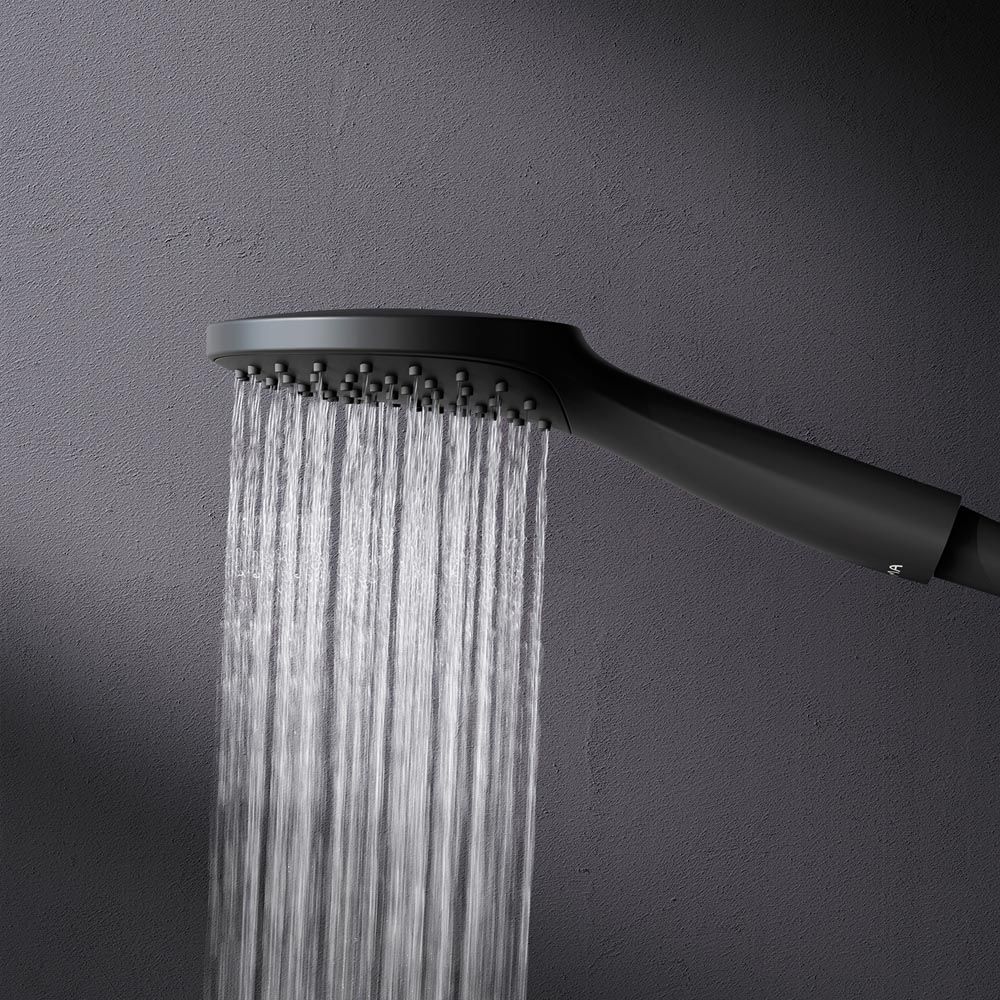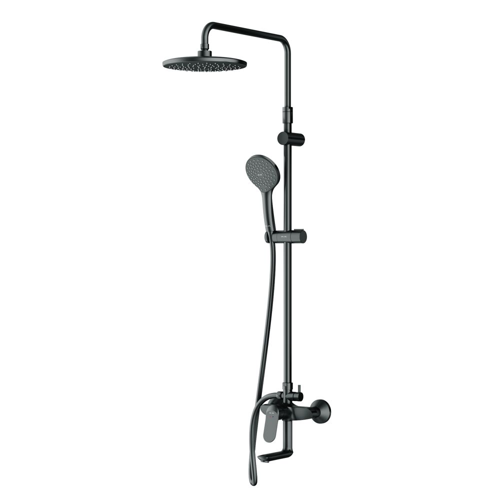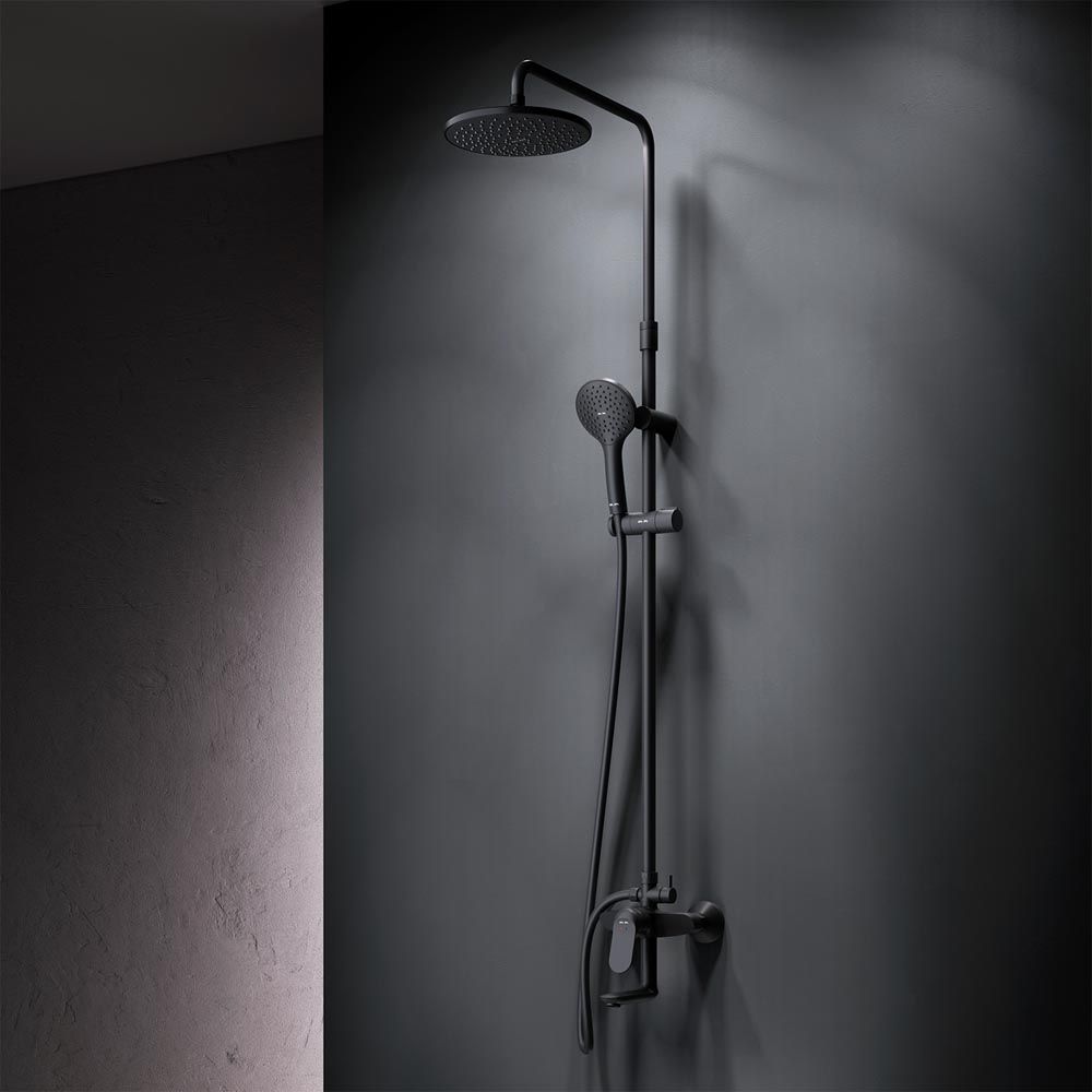 Черный цвет как нельзя лучше подчеркивает изящество силуэтов смесителя и душевой системы добавляя роскошь интерьеру ванной комнаты. ""
