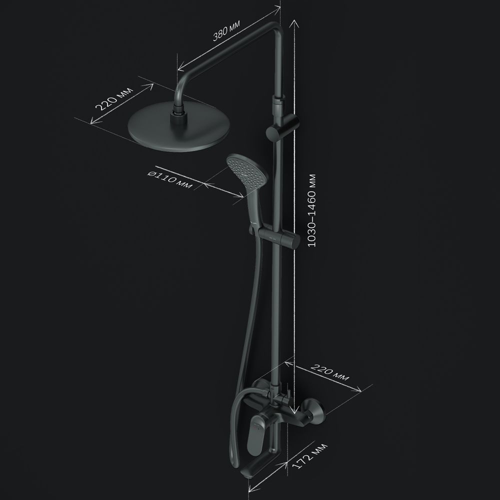 Диаметр душевых леек (верхний душ 220 мм и ручной душ 110 мм) позволит ощутить преимущества тропического душа даже в стандартной ванной тогда как увеличенная длина шланга 1750 мм обеспечит свободу движений во время принятия душа. Продуманные детали для удобства использования: телескопическая поворотная штанга регулируется по высоте в диапазоне от 1030 до 1460 мм обеспечивая комфорт для людей любого роста.