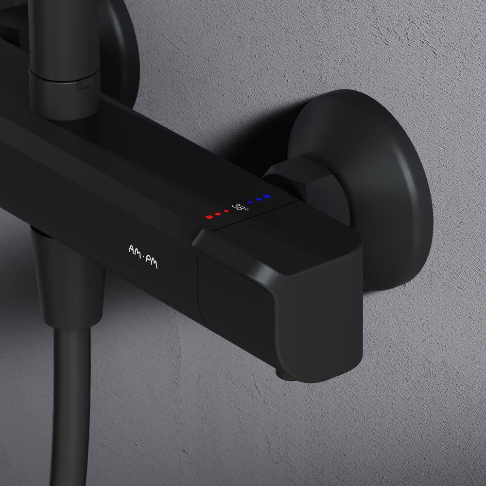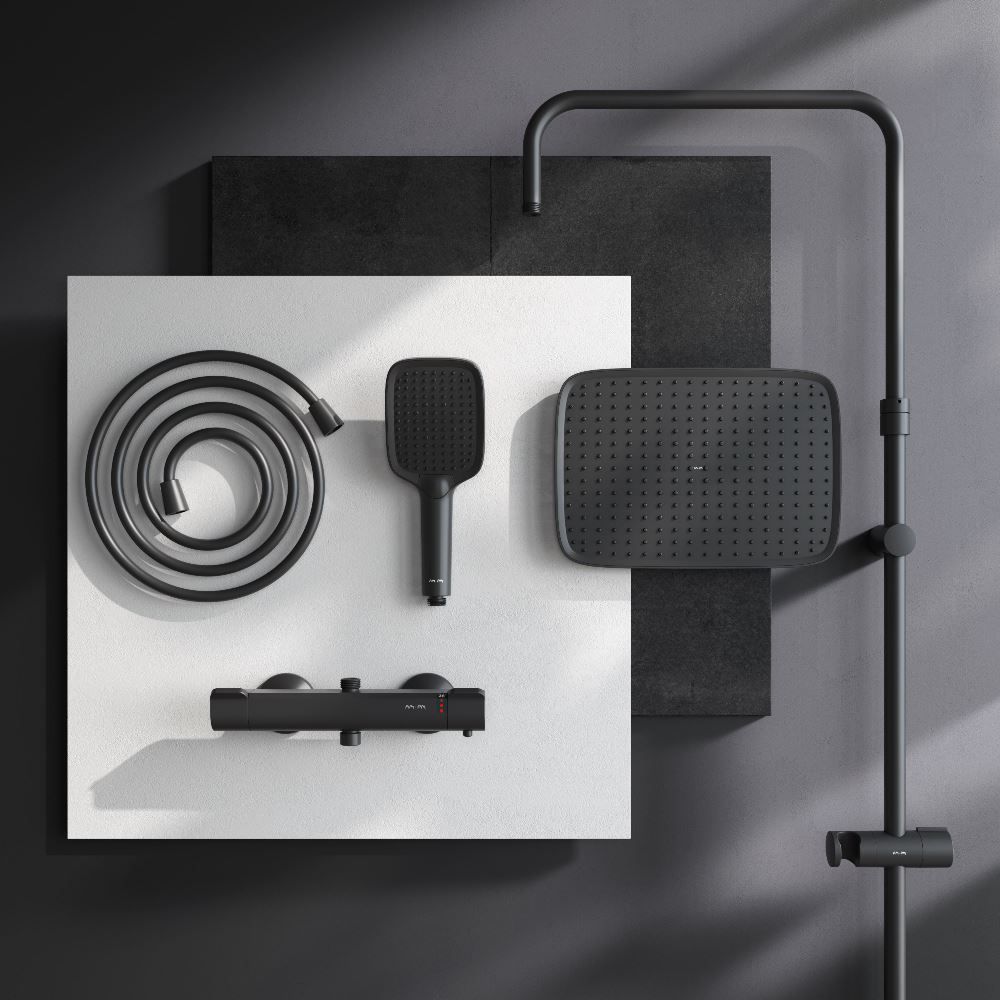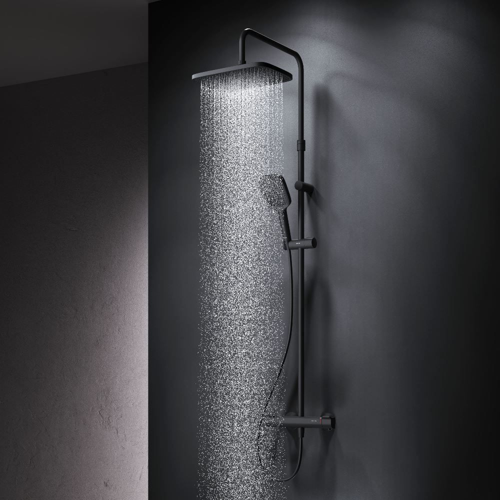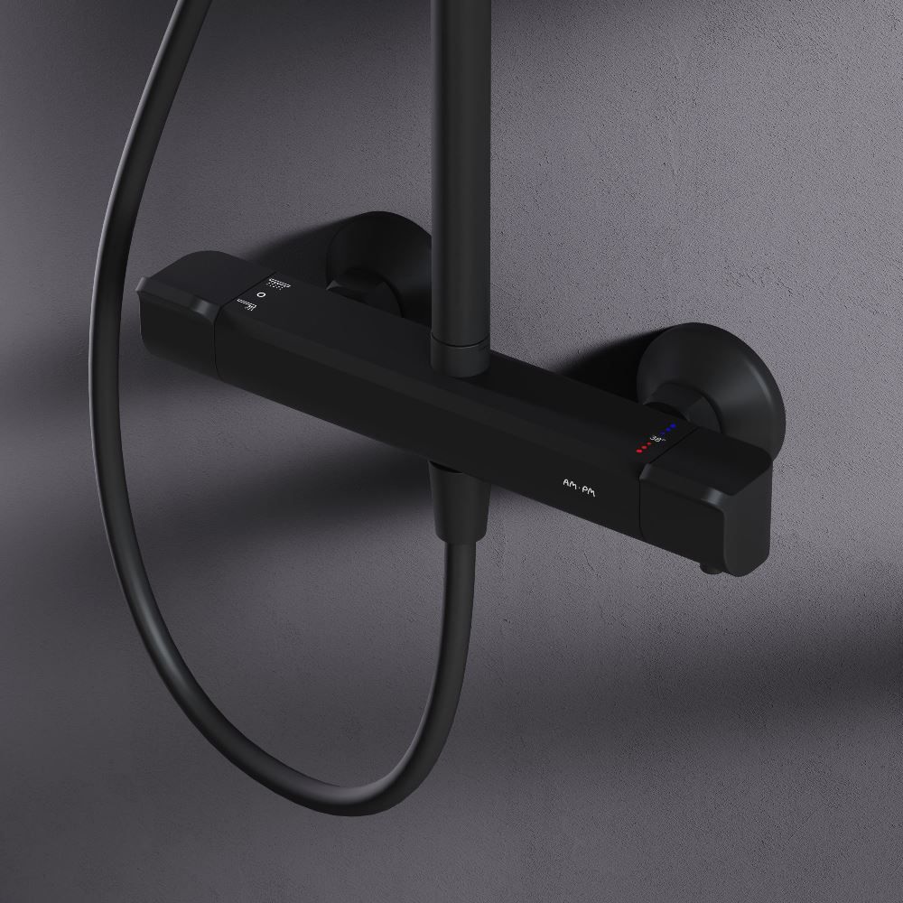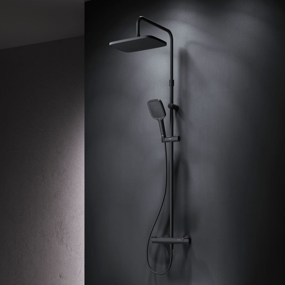 Безупречный внешний вид: яркий геометричный дизайн и утонченный силуэт – душевая система Func станет настоящим украшением современной ванной комнаты. Черный матовый цвет сделает этот смеситель главным акцентом в любом интерьере. ""