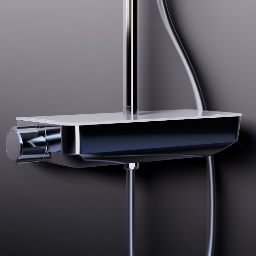 Непревзойдённый комфорт и удобство: смеситель выполнен в виде компактной но вместительной полочки из закаленного стекла где вы можете хранить все необходимые вещи.
