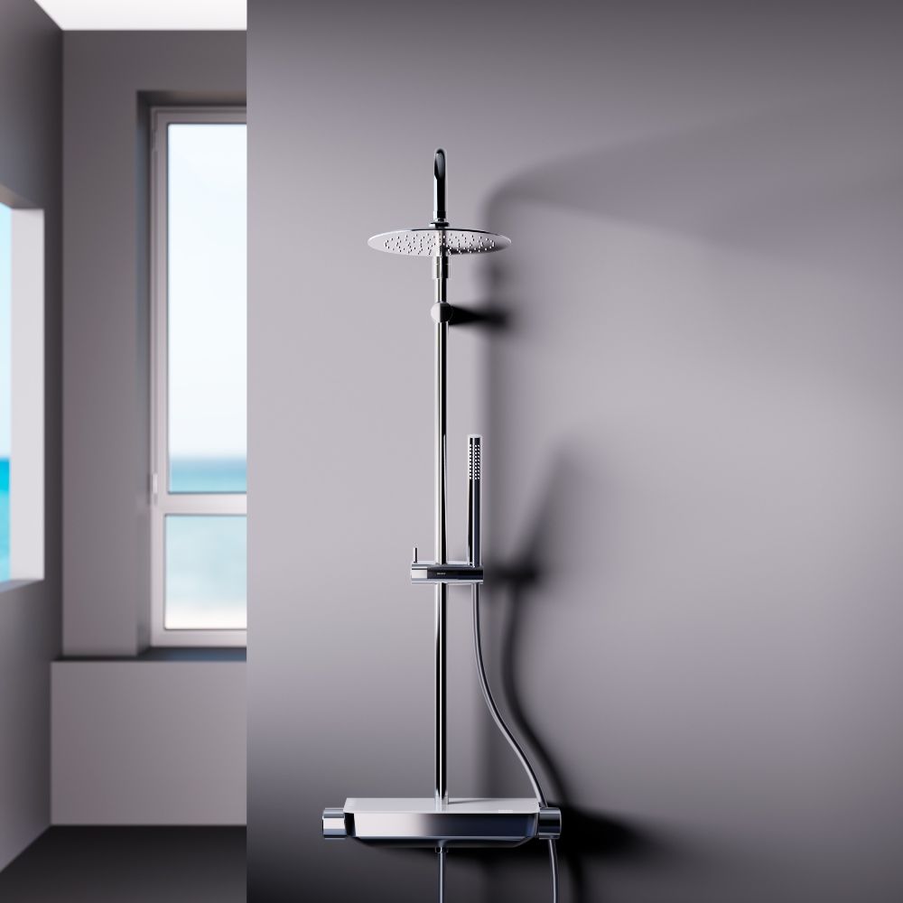 Увеличенный диаметр верхнего душа с возможностью регулировки угла наклона и три режима ручного душа выполненного в трендовой форме стика подарят вам полный спектр ощущений - помогут взбодриться утром и расслабится вечером. Переключайте потоки воды между ручной и тропической лейками плавным поворотом ручки смесителя.