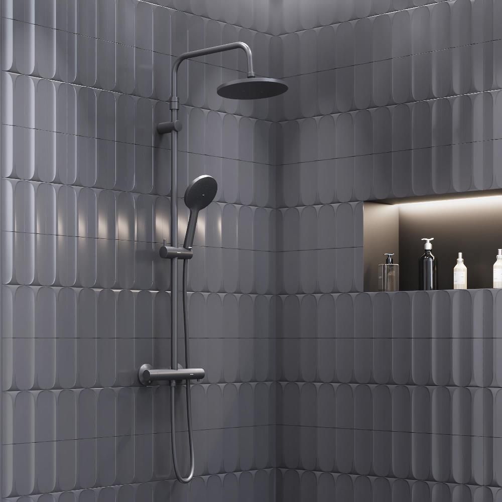 Инновационное PVD-покрытие гарантирует чрезвычайную прочность душевой системы. Матово-черная поверхность не выцветает с годами и устойчива к механическим повреждениям загрязнениям и отпечаткам пальцев. ""