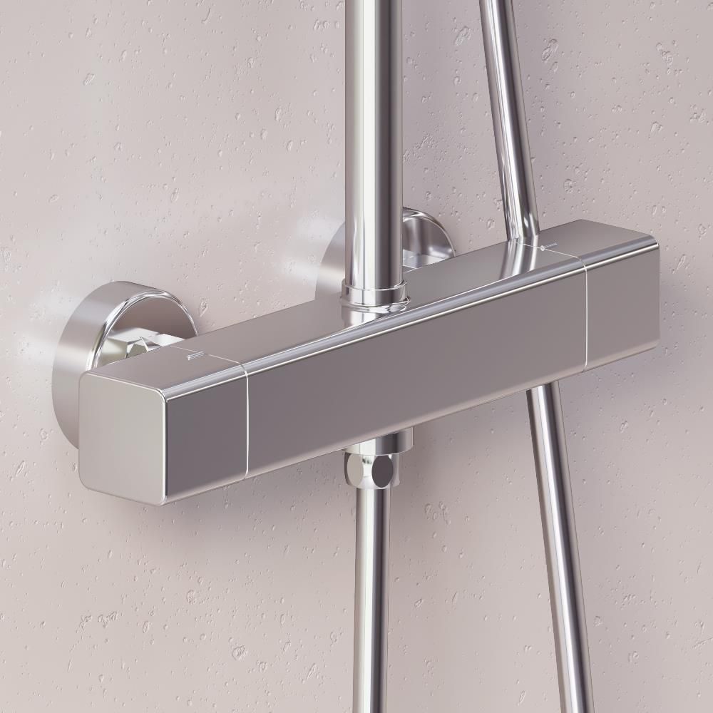 Максимальная безопасность: термостатический картридж 35 мм обеспечивает точную настройку температуры и напора воды. Благодаря телескопической штанге с диапазоном регулировки в 400 мм водные процедуры будут одинаково комфортны абсолютно для всех членов семьи. Выставляйте комфортные для вас параметры легким поворотом правой ручки смесителя.