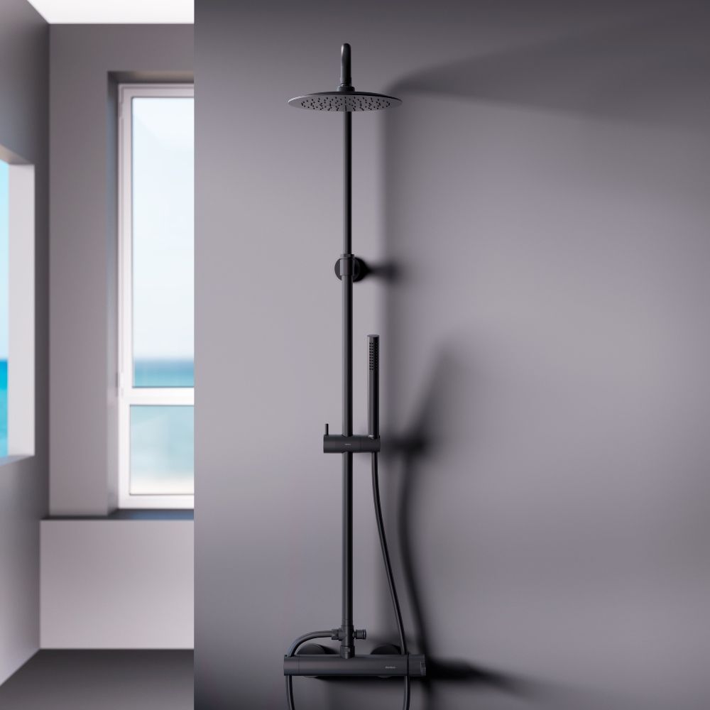 Инновационное PVD-покрытие гарантирует чрезвычайную прочность душевой системы. Матово-черная поверхность не выцветает с годами и устойчива к механическим повреждениям загрязнениям и отпечаткам пальцев. ""