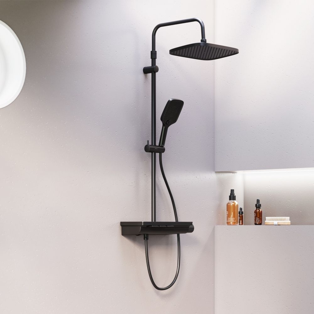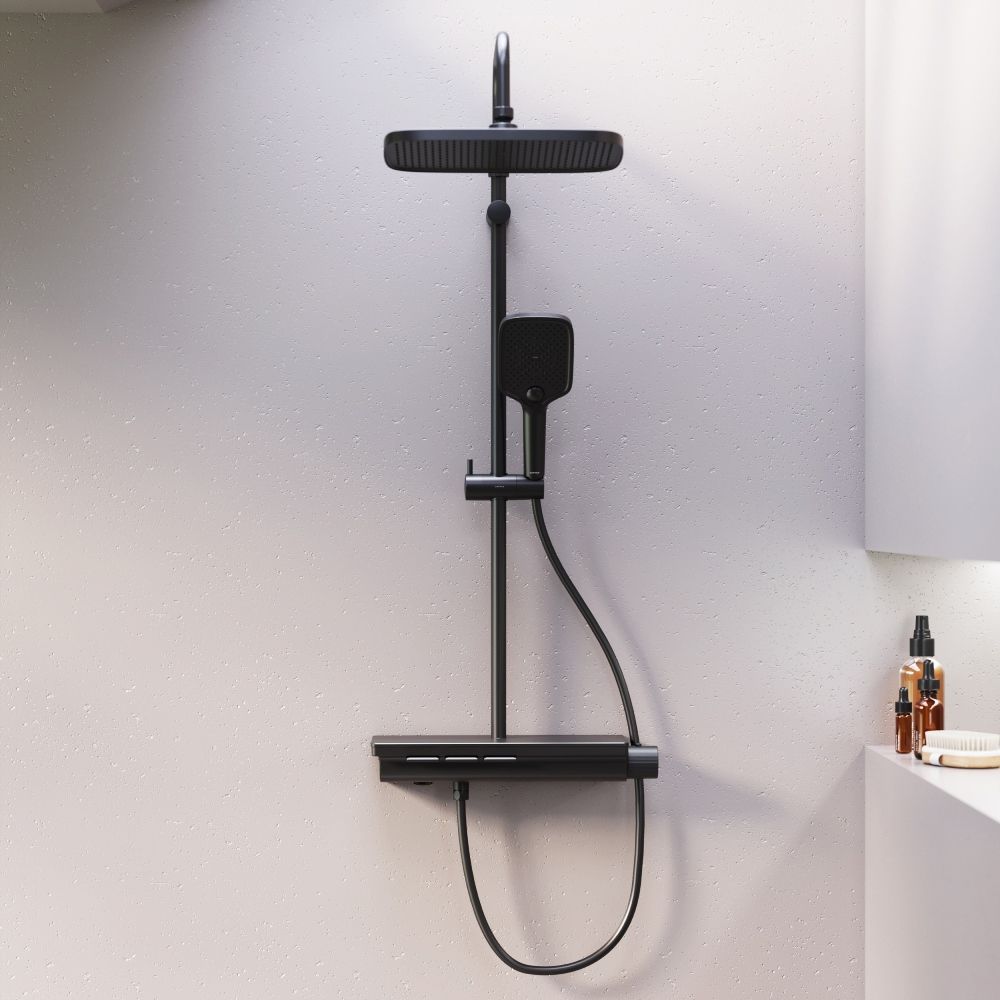 Максимальная безопасность: термостатический картридж 35 мм обеспечивает точную настройку температуры и напора воды. Благодаря телескопической штанге с диапазоном регулировки в 400 мм водные процедуры будут одинаково комфортны абсолютно для всех членов семьи. Непревзойдённый комфорт и удобство: благодаря стильной полочке из ударопрочного закаленного стекла вы можете хранить все необходимые вещи под рукой.