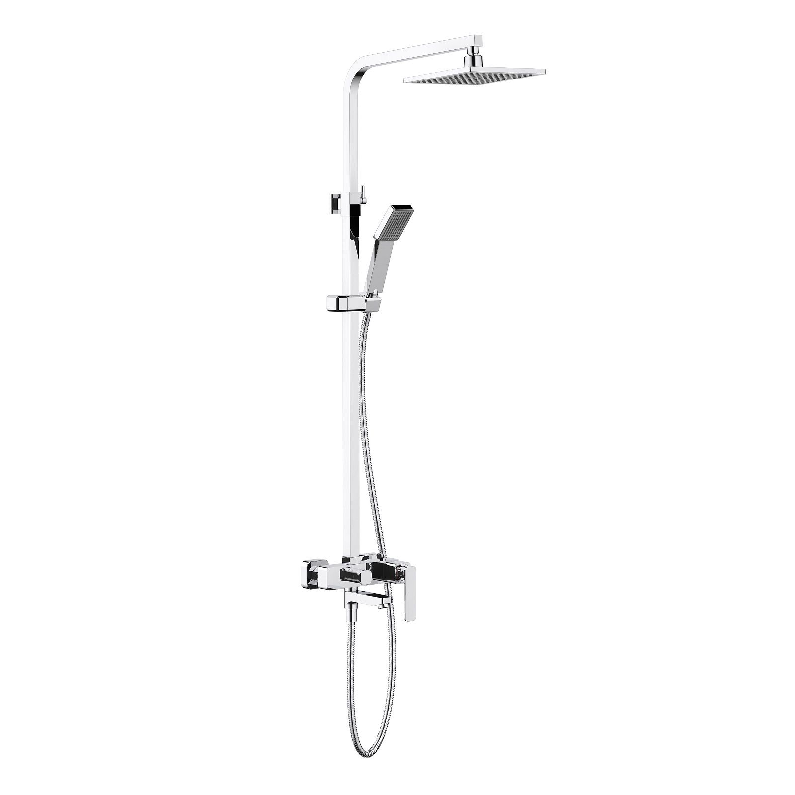 Смеситель - 1 шт.Штанга тропического душа, выдвижная - 1 шт.Держатель ручной лейки (пластик) - 1 шт.Ручная лейка (пластик) - 1 шт.Тропический душ (пластик) - 1 шт.Шланг душа 1,5 м - 1 шт.Эксцентриковые соединители - 2 шт.Декоративные отражатели - 2 шт.Крепеж к стене с декоративным отражателем - 1 шт.Инструкция - 1 шт. |