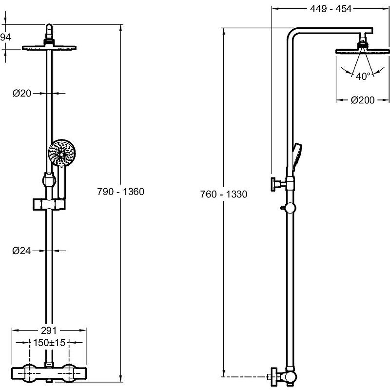 Свойства. Страна бренда: Франция; Производитель: Jacob Delafon; Артикул: E24322-CP; Ширина: 291 мм; Высота: 1330 мм; Длина: 454 мм; Цвет: Хром; Вес: 3.2 кг; Тип изделия: Душевые системы; Цвет: Хром; Смеситель: Со смесителем; Излив: Без излива; Термостат: С термостатом; Монтаж: На стену; Регулировка по высоте: С регулировкой по высоте; Форма верхнего душа: Круглая; Режимы ручного душа: С тремя режимами; Стилистика дизайна: В современном стиле; Материал: Латунь; Форма: лейки Круглая.