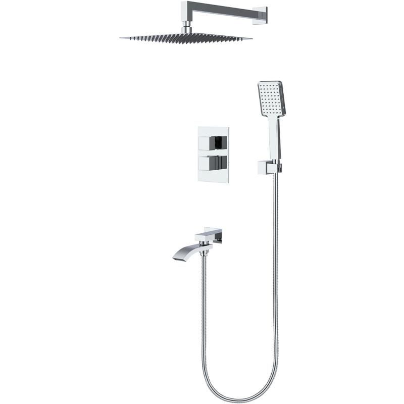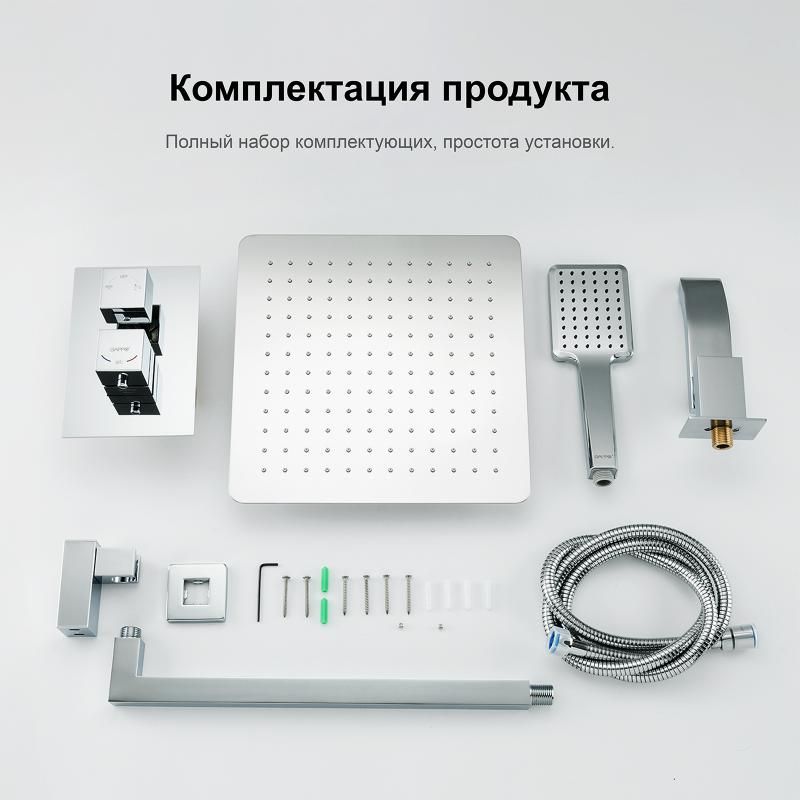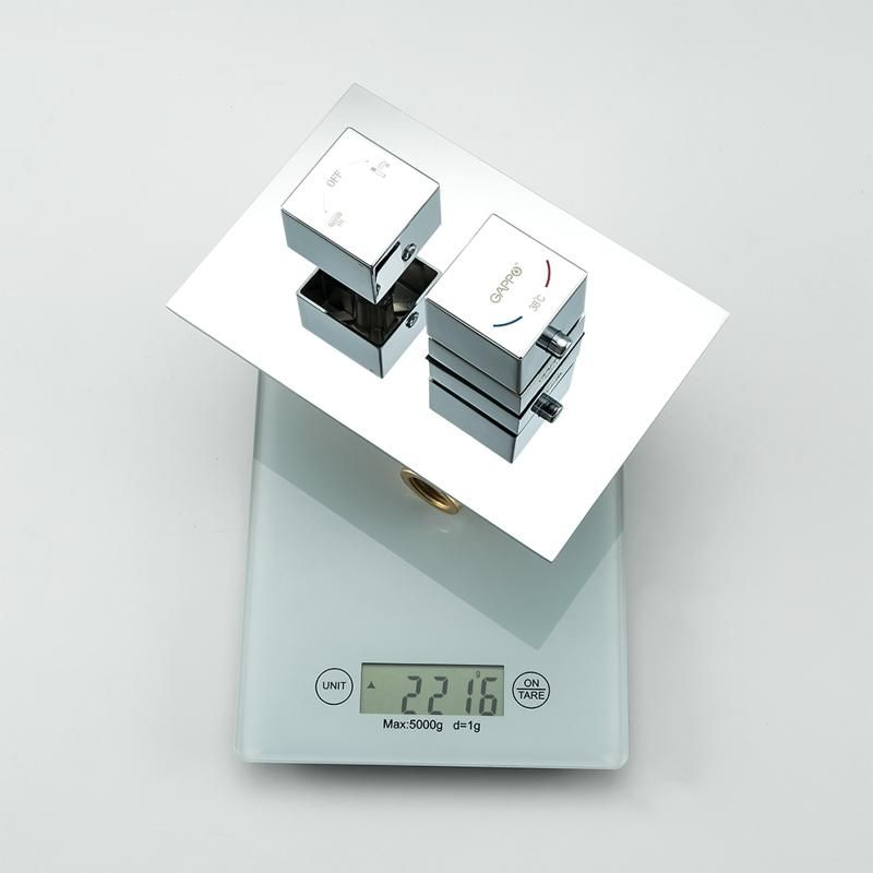 Встраиваемый душевой комплект Gappo G7107-40 из латуни с хромовым покрытием. Не поржавеет и не потеряет со временем блеск. Поверхность легко моется. Смеситель укомплектован лейкой, держателем для нее, изливом и тропическим душем. Ручной душ работает в одном режиме и длина его шланга составляет 1.5 метра.