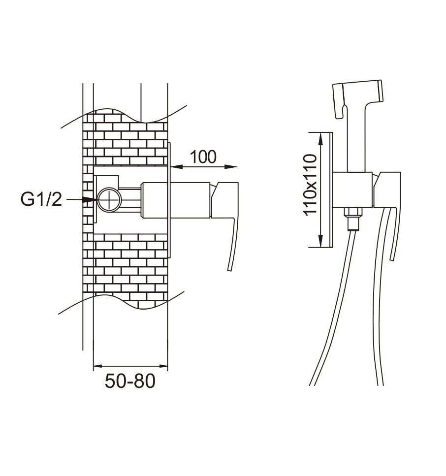 Смеситель, гигиеническая лейка, держатель лейки, душевой шланг 100 мм |