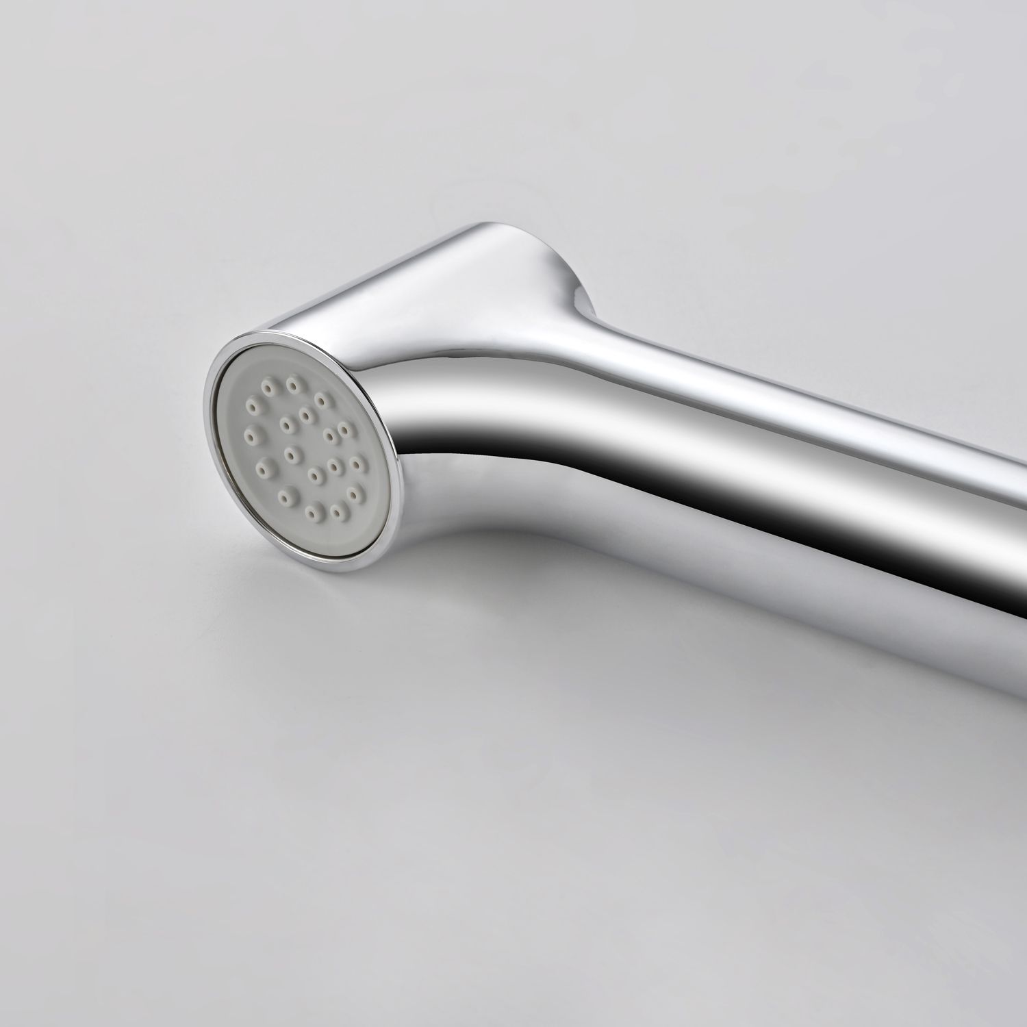 Гигиеническая лейка выполнена из ABS пластика. Держатель лейки расположен непосредственно на корпусе смесителя, обеспечивая удобство использования и предотвращая случайное падение лейки.