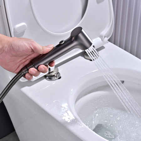 Гигиенический душ Rose R235T в модном цвете "оружейная сталь" — это стильное и функциональное решение для вашей ванной комнаты. Латунный корпус обеспечивает прочность и долговечность, а керамический картридж и рычажное управление гарантируют плавное и точное регулирование температуры и напора воды.