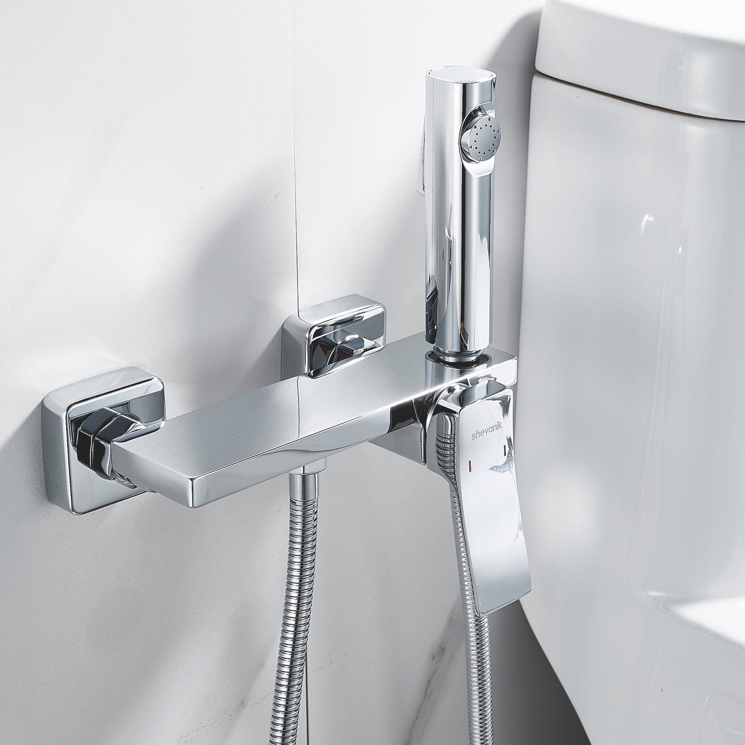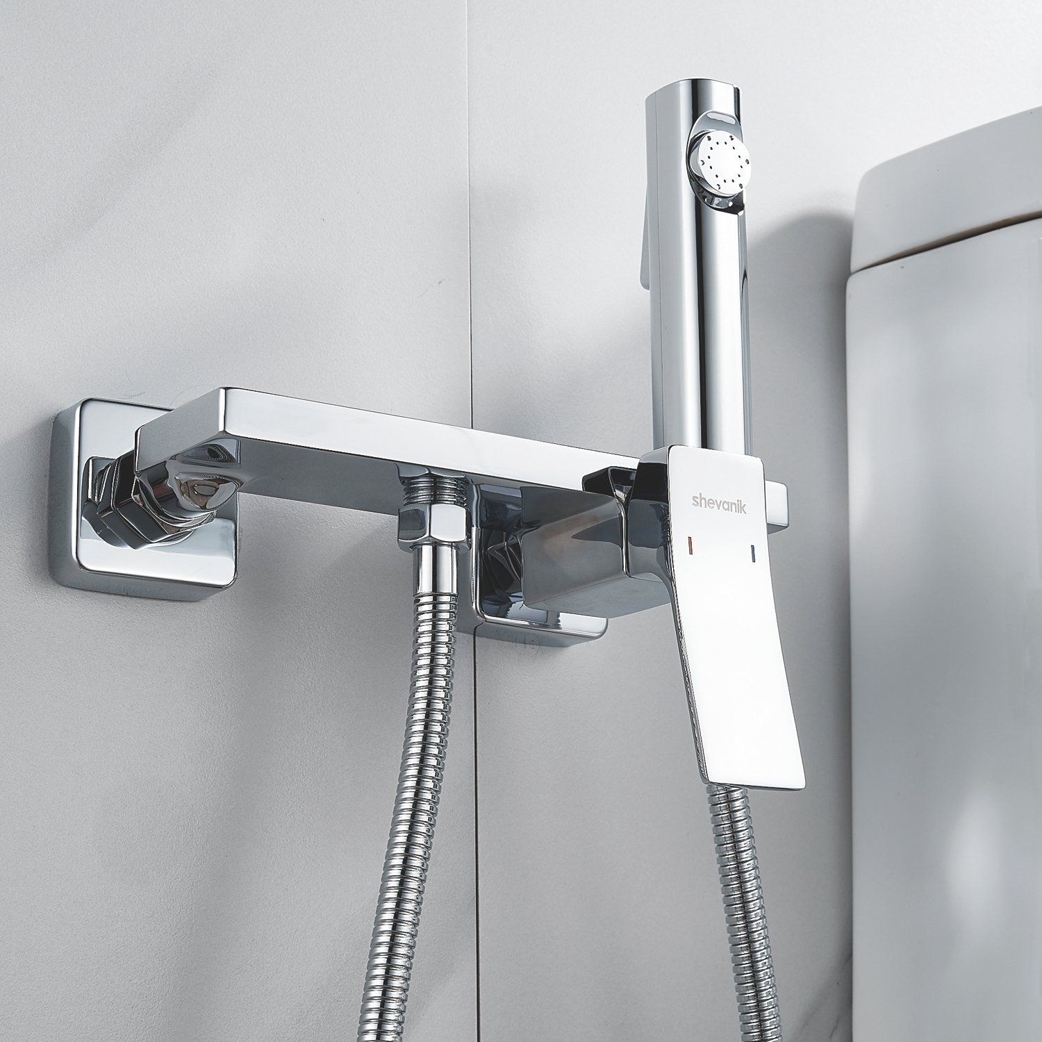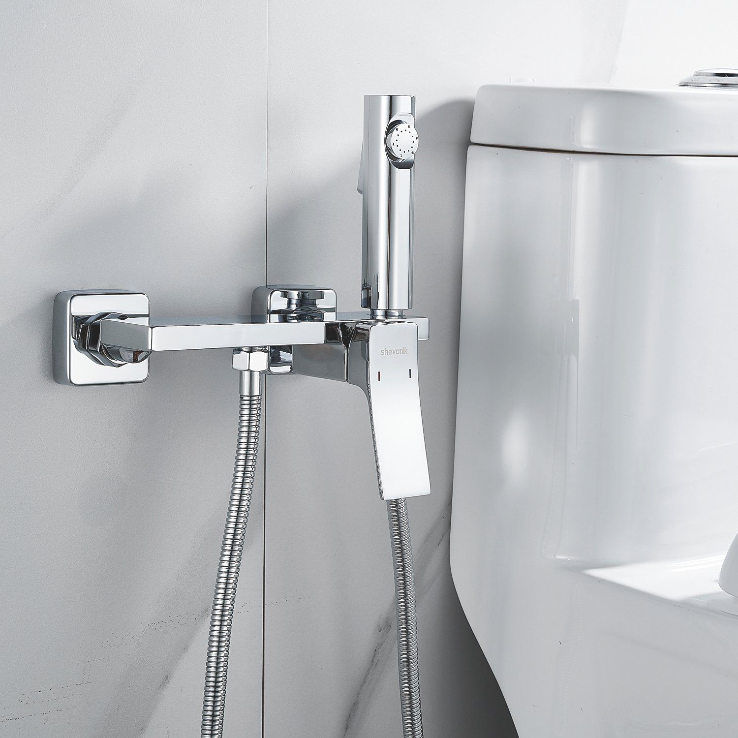 Гигиенический душ Shevanik со смесителем угловатой формы изготовлен из высококачественной латуни, обеспечивая прочность и долговечность. Уникальная конструкция корпуса смесителя выполнена в виде полочки для дополнительного удобства и хранения личных гигиенических принадлежностей.