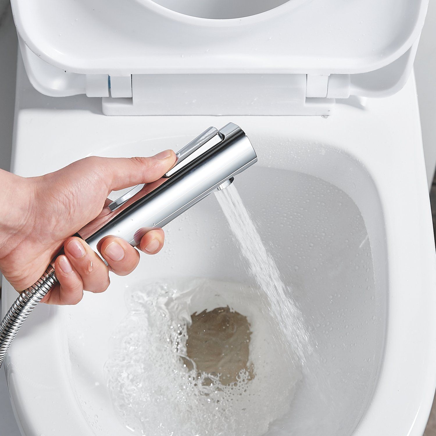 Гигиенический набор оснащен 120-сантиметровым шлангом с защитой от перекручивания, гарантируя комфортное использование без неприятных сюрпризов. Гигиеническая лейка изготовлена из ABS-пластика, что исключает повреждения напольного покрытия в случае случайного падения.