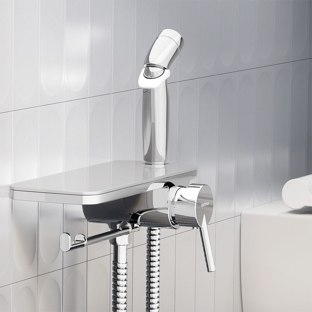 Смеситель с гигиеническим душем имеет компактный размер и монтируется непосредственно в стену что помогает установить его даже в небольших санузлах. Смеситель оборудован ручкой-стиком которая удобно ложится в руку и гарантирует комфортное использование гигиенического душа. Керамический картридж Light Flow обеспечивает плавное управление ручкой смесителя и оптимальную регулировку температуры и мощности потока. ""