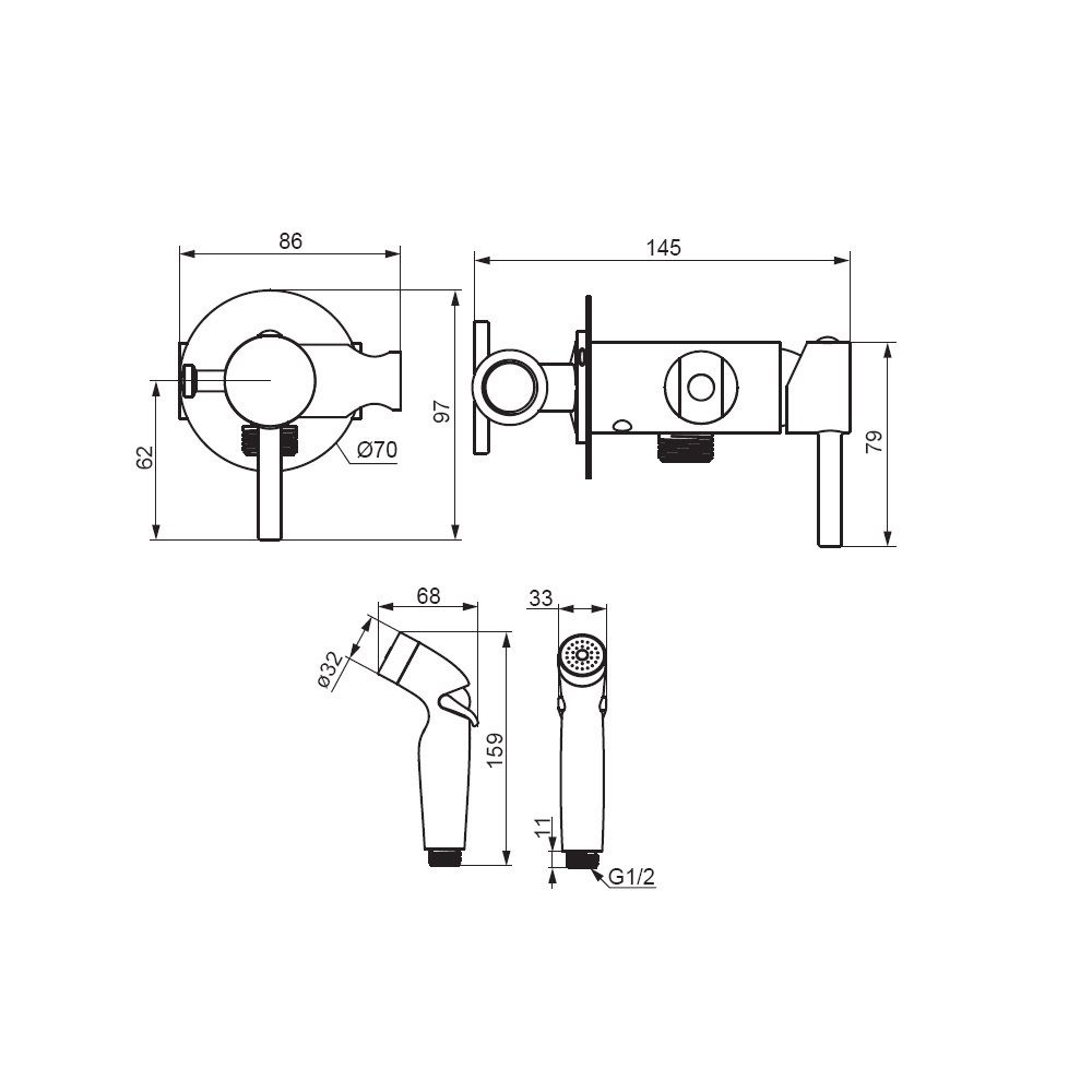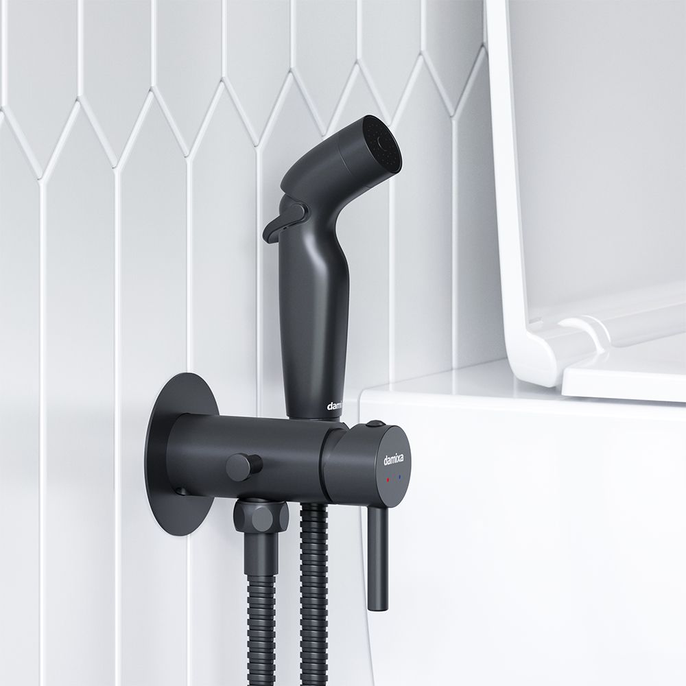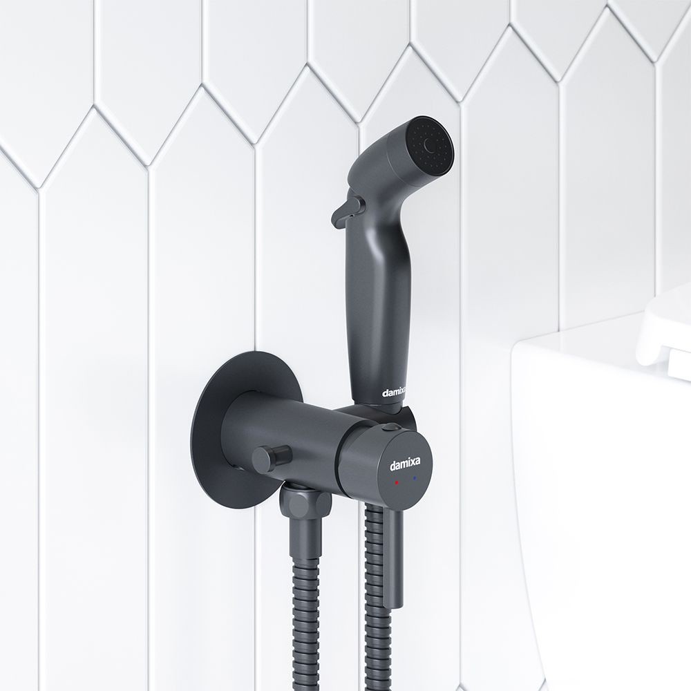Гигиенический душ со смесителем встраивается в стену тем самым не занимает много места и представляет возможность установки в небольших помещениях.