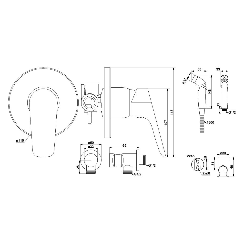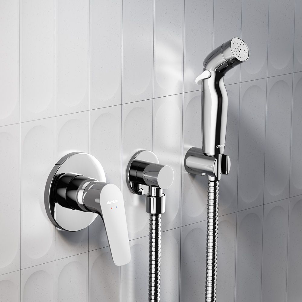 - С заботой о чистоте: к смесителю прилагается функциональный гигиенический душ и шланг для душа.