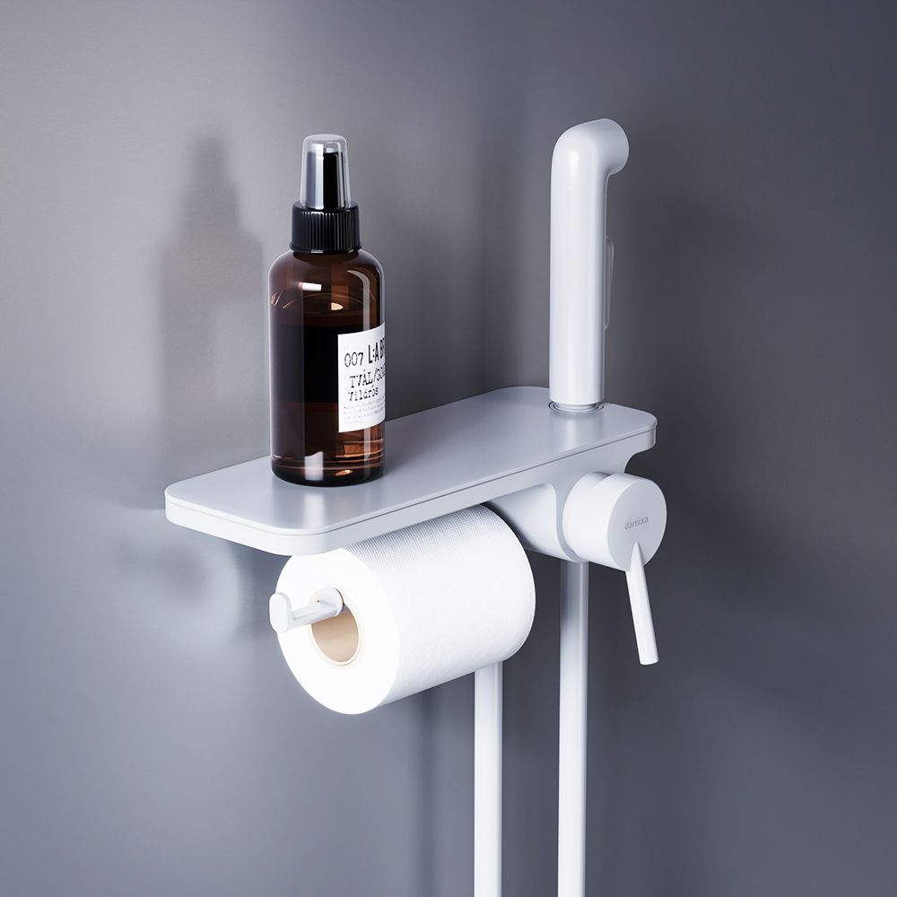 Самое практичное гигиеническое решение: смеситель оснащен удобной полочкой на которой поместится все что необходимо под рукой и держателем для туалетной бумаги.