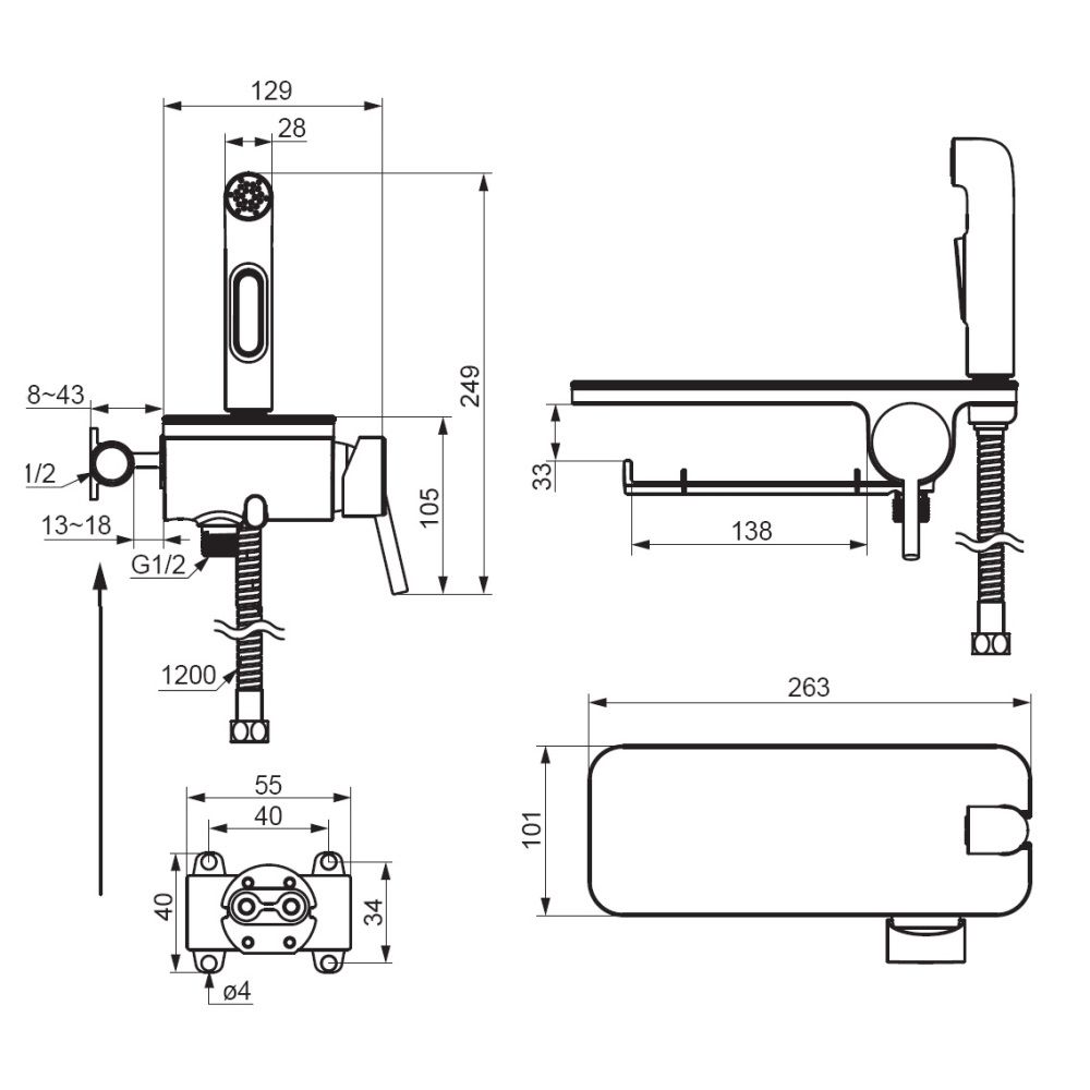 Смеситель с гигиеническим душем имеет компактный размер и монтируется непосредственно в стену что помогает установить его даже в небольших санузлах.