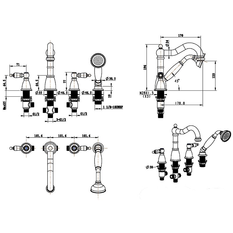 Смеситель на борт ванны Boheme Tradizionale Chrome 396 Хром