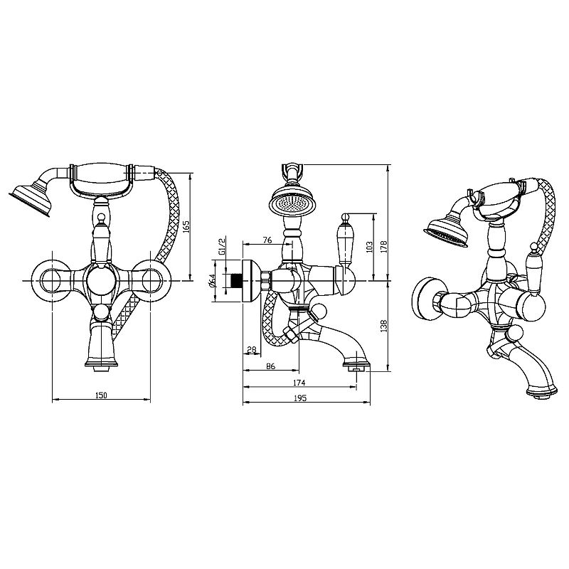 - Длина душевого шланга: 1500 мм.