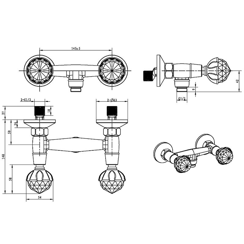Смеситель для душа Boheme Imperiale Presente 334 Золото
