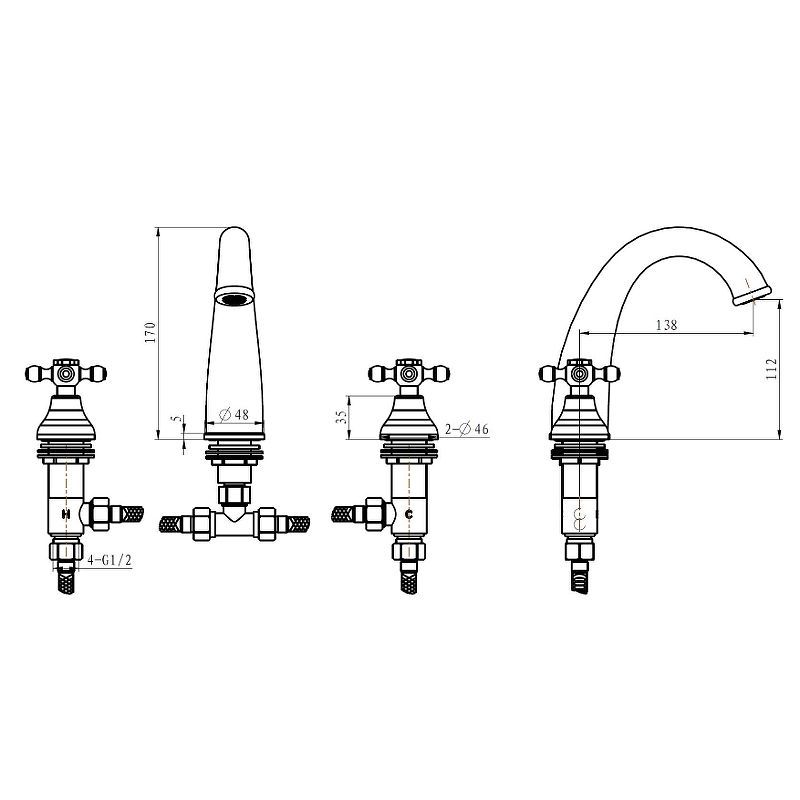 Смеситель для раковины Boheme Royal Cristal 297-Royal/CRST Золото