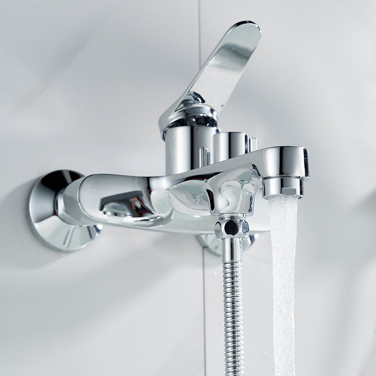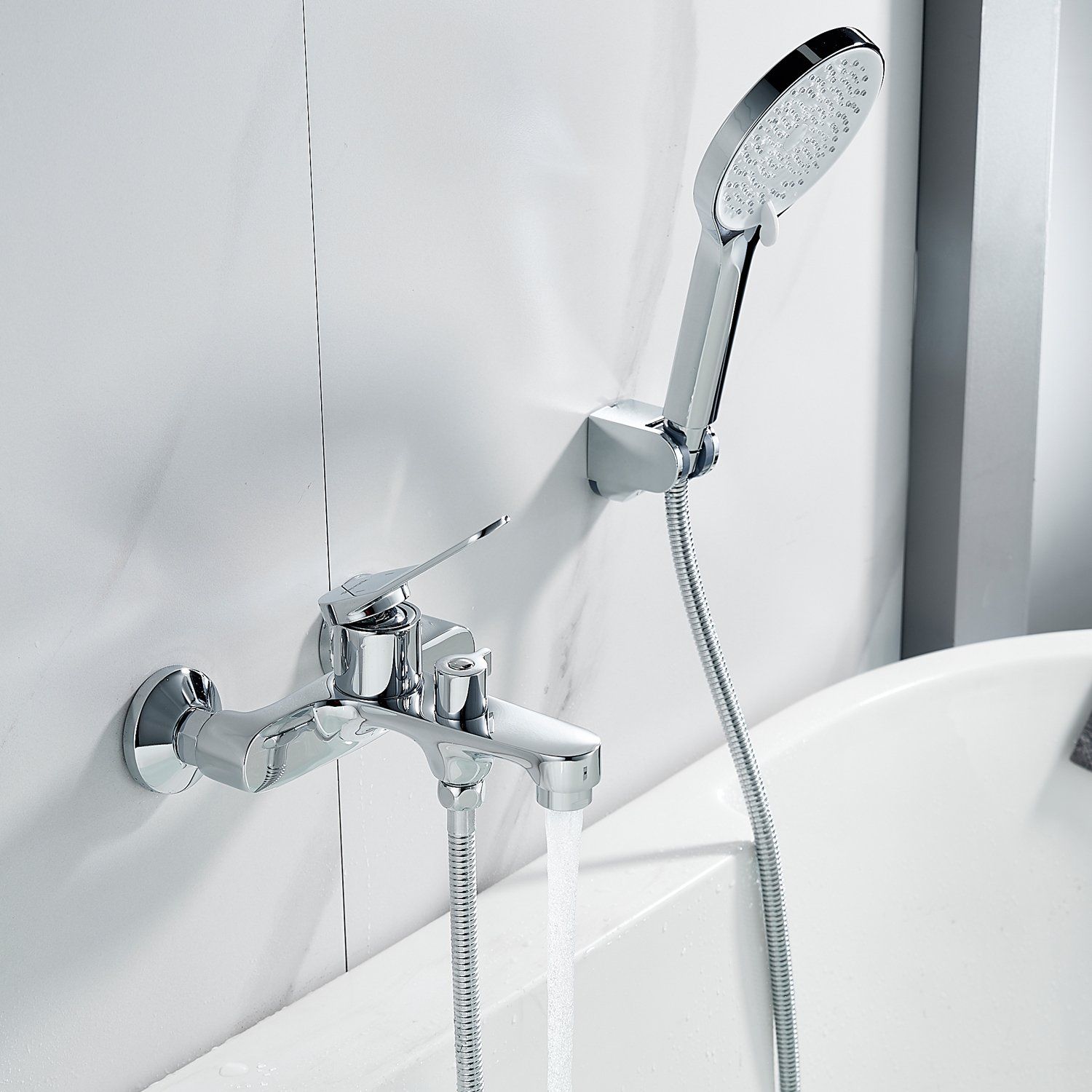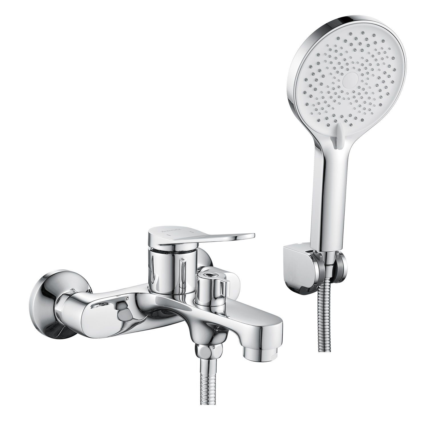 В комплекте со смесителем поставляются эксцентрики, настенный держатель для душевой лейки, а также декоративные отражатели. Керамический картридж обеспечивает долговечность и надежность механизма, а рычажное управление делает использование смесителя максимально удобным.