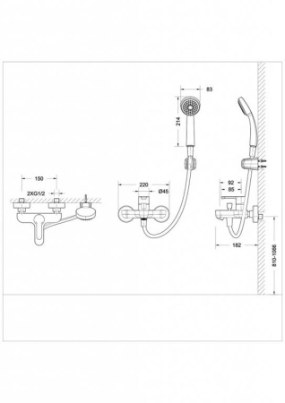 смеситель, лейка, шланг, держатель лейки, эксцентрики, декоративные чашки |