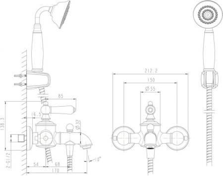 смеситель, лейка, шланг, держатель лейки, эксцентрики, декоративные чашки |
