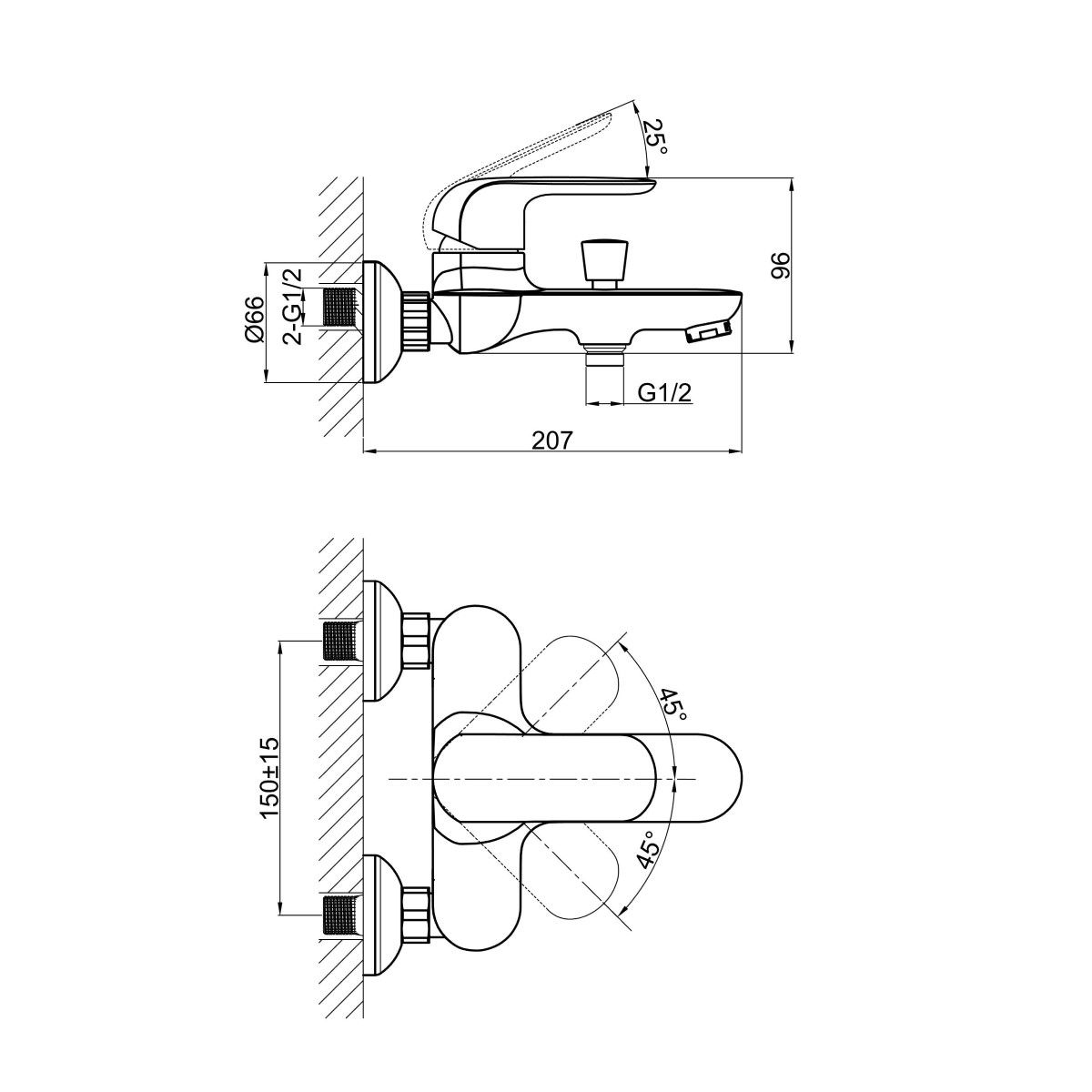 Смеситель, эксцентрики-2шт, декоративная шайба (отражатель)-2шт, шланг душевой, лейка душевая-3 режима, держатель душевой лейки, паспорт, брендовая сумка |