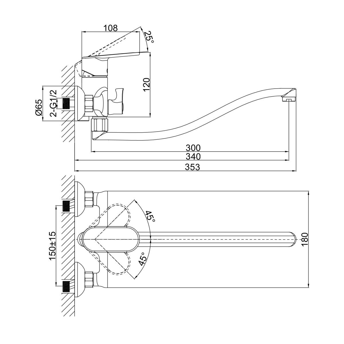Смеситель, излив, эксцентрики-2шт, декоративная шайба (отражатель)-2шт, шланг душевой, лейка душевая-3 режима, держатель душевой лейки, паспорт, брендовая сумка |