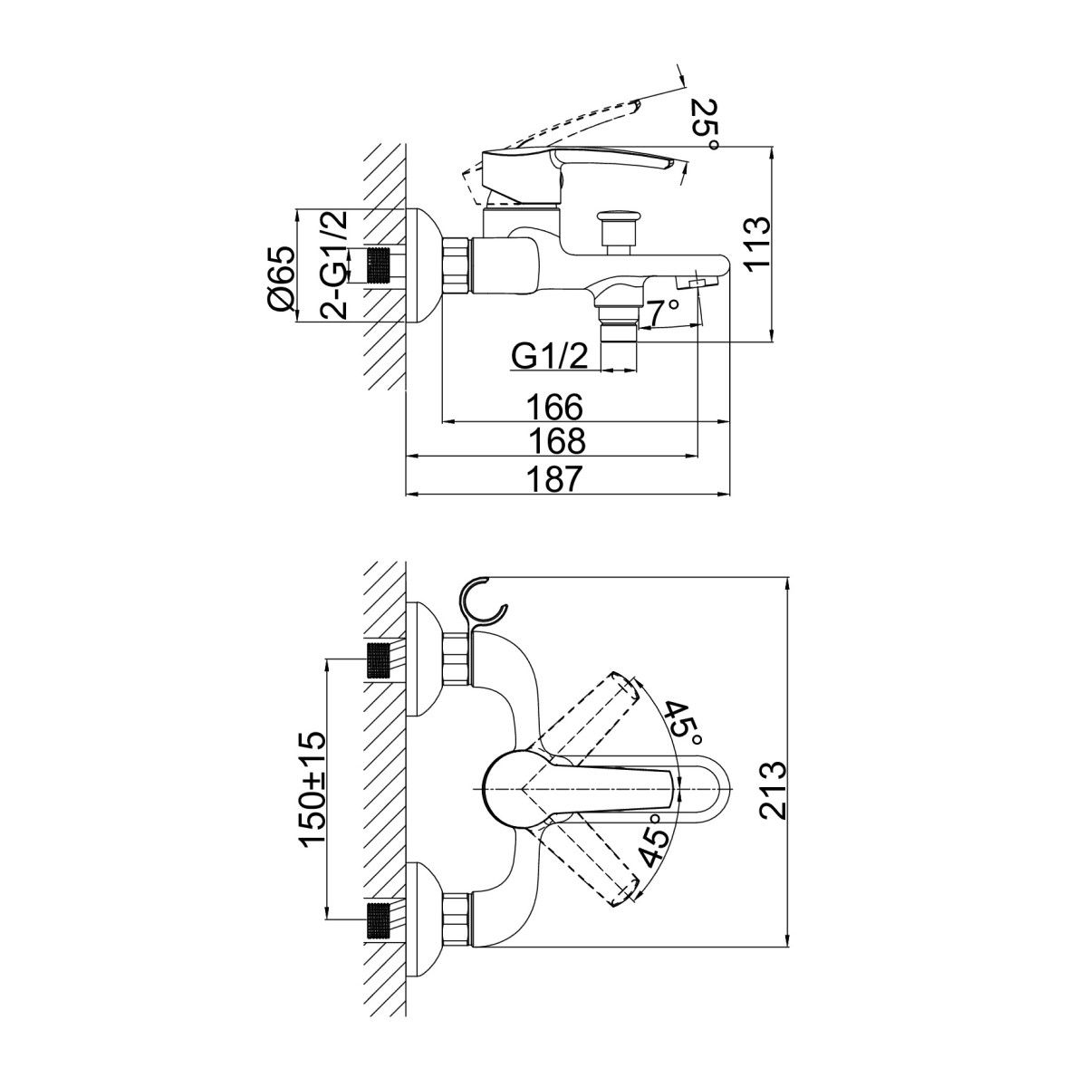 - Душевая трехрежимная лейка и шланг длинной 150 см уже в комплекте.