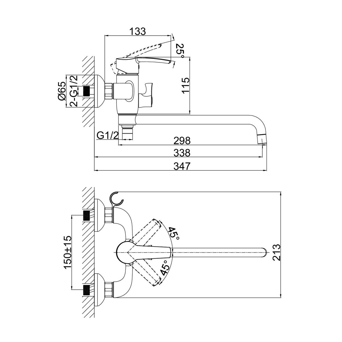 - Душевая трехрежимная лейка и шланг длинной 150 см уже в комплекте.
