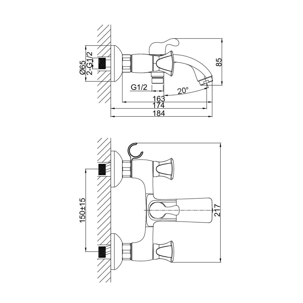Блестящий внешний вид двухручкового смесителя привлекает своим внешним видом, послужит прекрасным дополнением классической ванной комнаты.