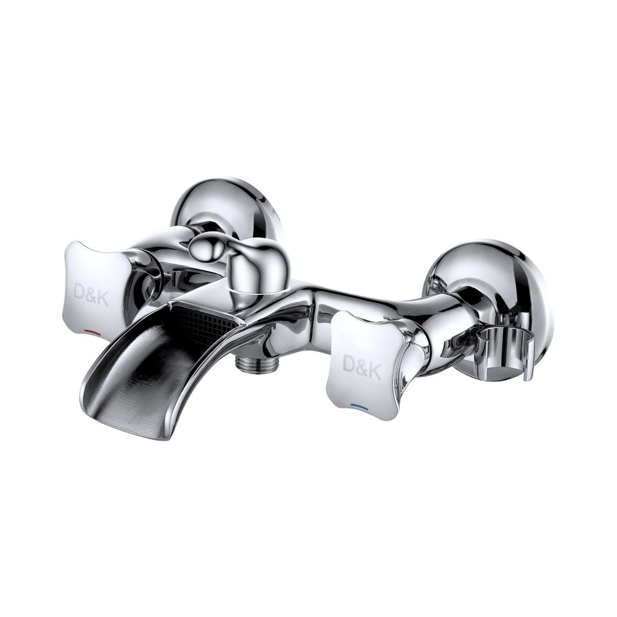 Блестящий внешний вид двухручкового смесителя с каскадным изливом привлекает своим внешним видом, послужит прекрасным дополнением классической ванной комнаты.