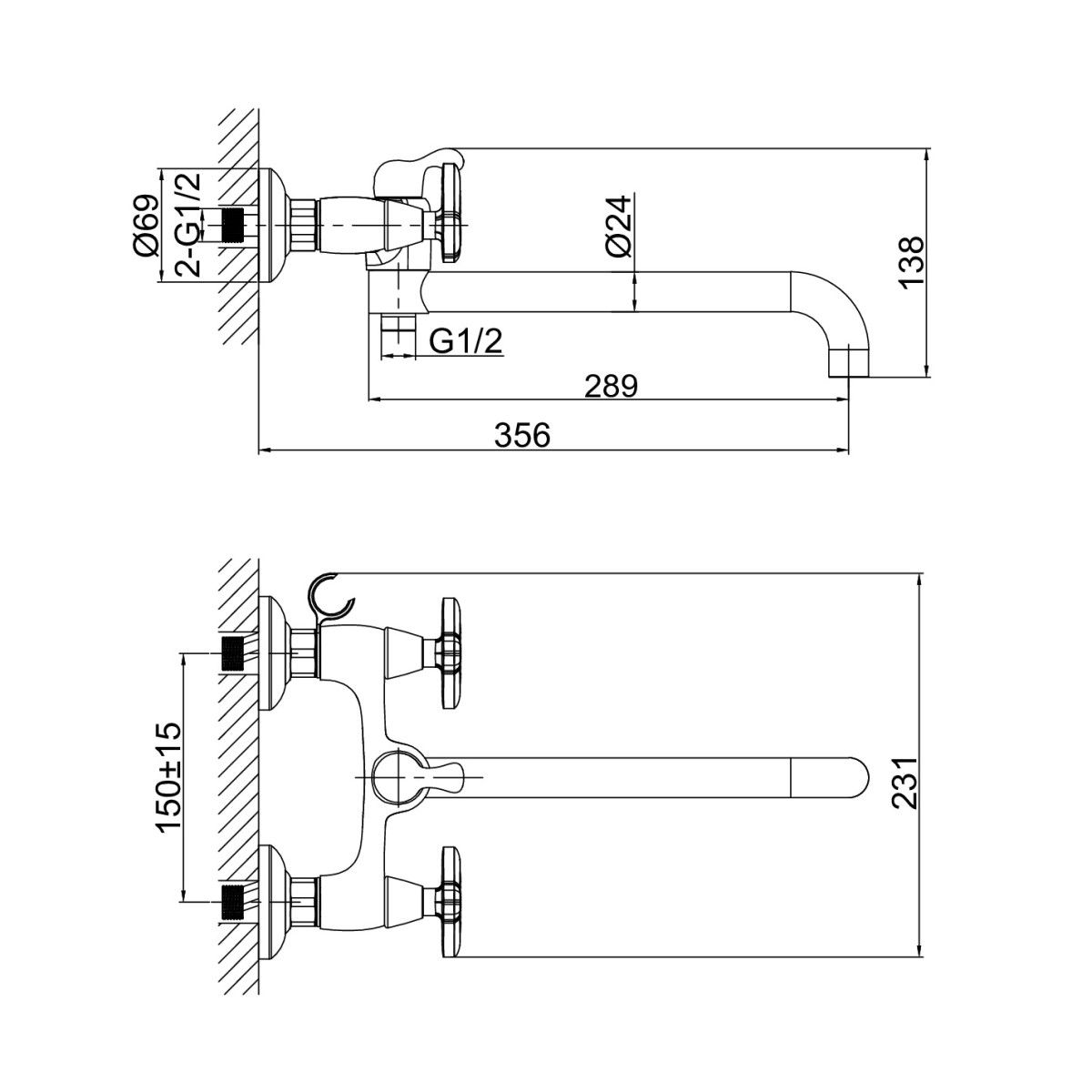 Блестящий внешний вид двухручкового смесителя с обновленными ручками привлекает своим внешним видом, послужит прекрасным дополнением классической ванной комнаты.