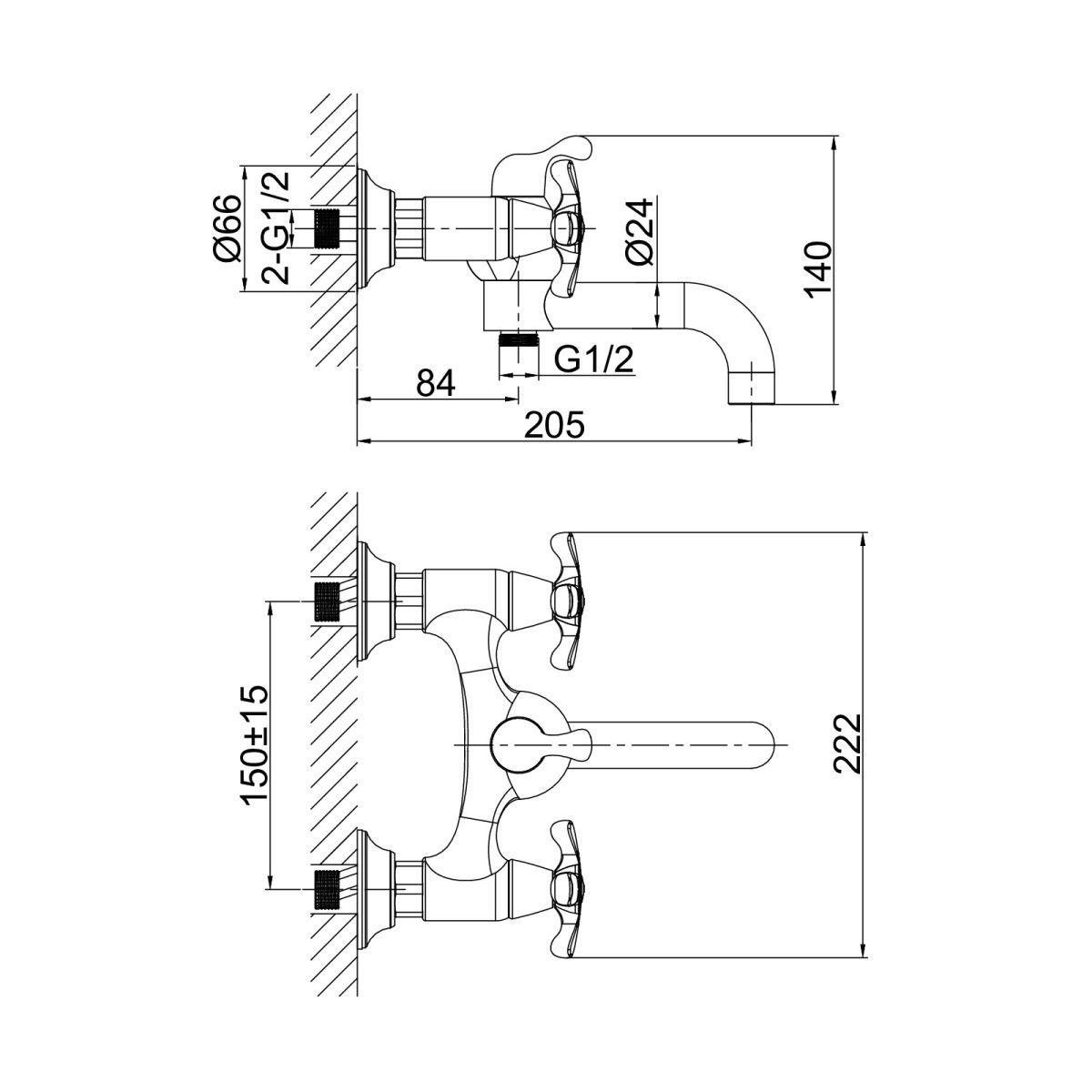 Блестящий внешний вид двухручкового смесителя привлекает своим внешним видом, послужит прекрасным дополнением классической ванной комнаты.