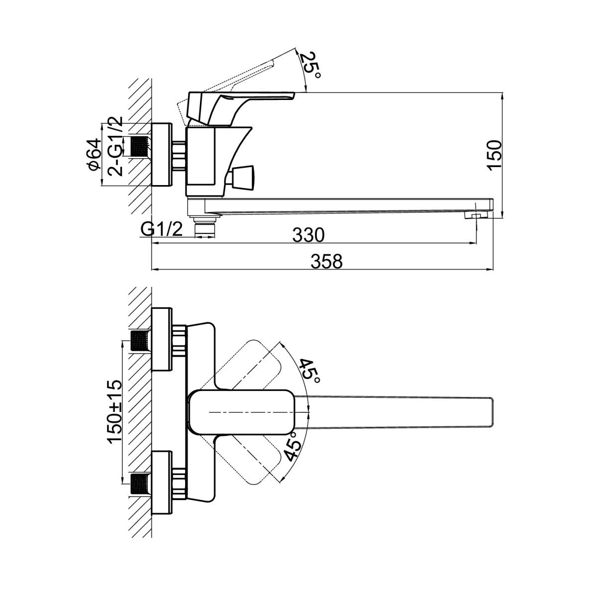 - Душевая трехрежимная лейка и шланг длинной 150 см уже в комплекте.