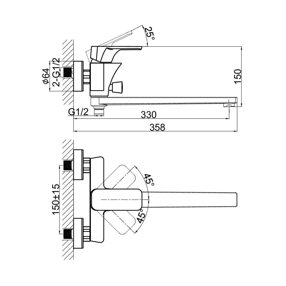 Строгие черты в изысканном черном цвете подчеркивают индивидуальность каждой ванной комнаты. Ручка и излив правильно подобраны по размеру, для удобной повседневной эксплуатации на долгие годы.