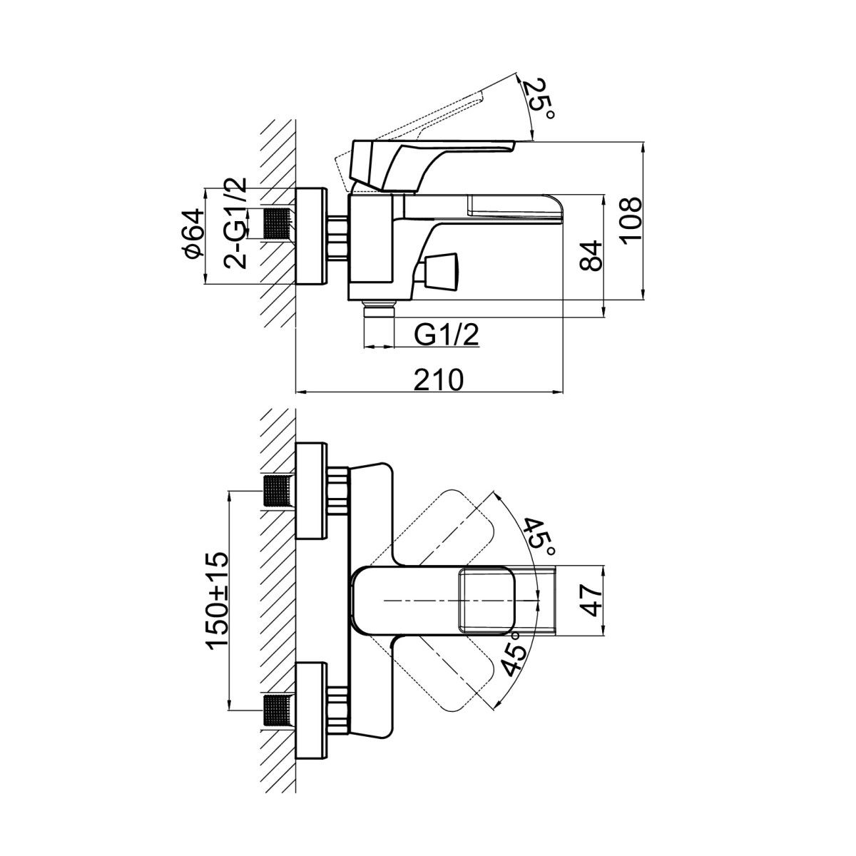 Смеситель, эксцентрики-2шт, декоративная шайба (отражатель)-2шт, шланг душевой, лейка душевая-3 режима, держатель душевой лейки, паспорт, брендовая сумка |
