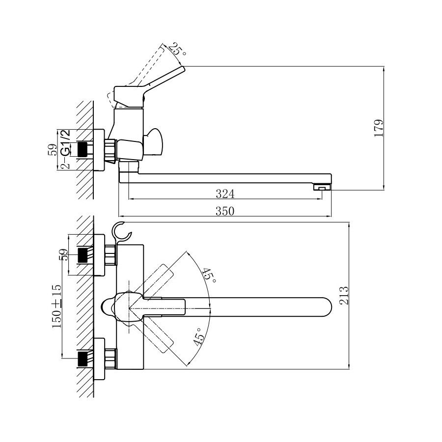 - Душевая трехрежимная лейка и шланг длинной 150 см уже в комплекте.
