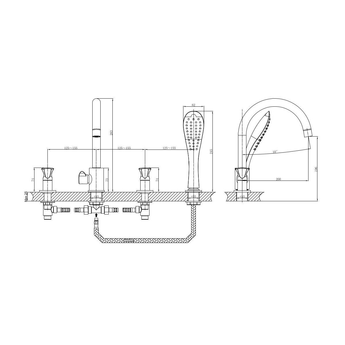 Смеситель, излив с дивертером (переключатель), крепёжная гайка-3шт, душевой шланг, соединительный шланг, душевая лейка, паспорт |