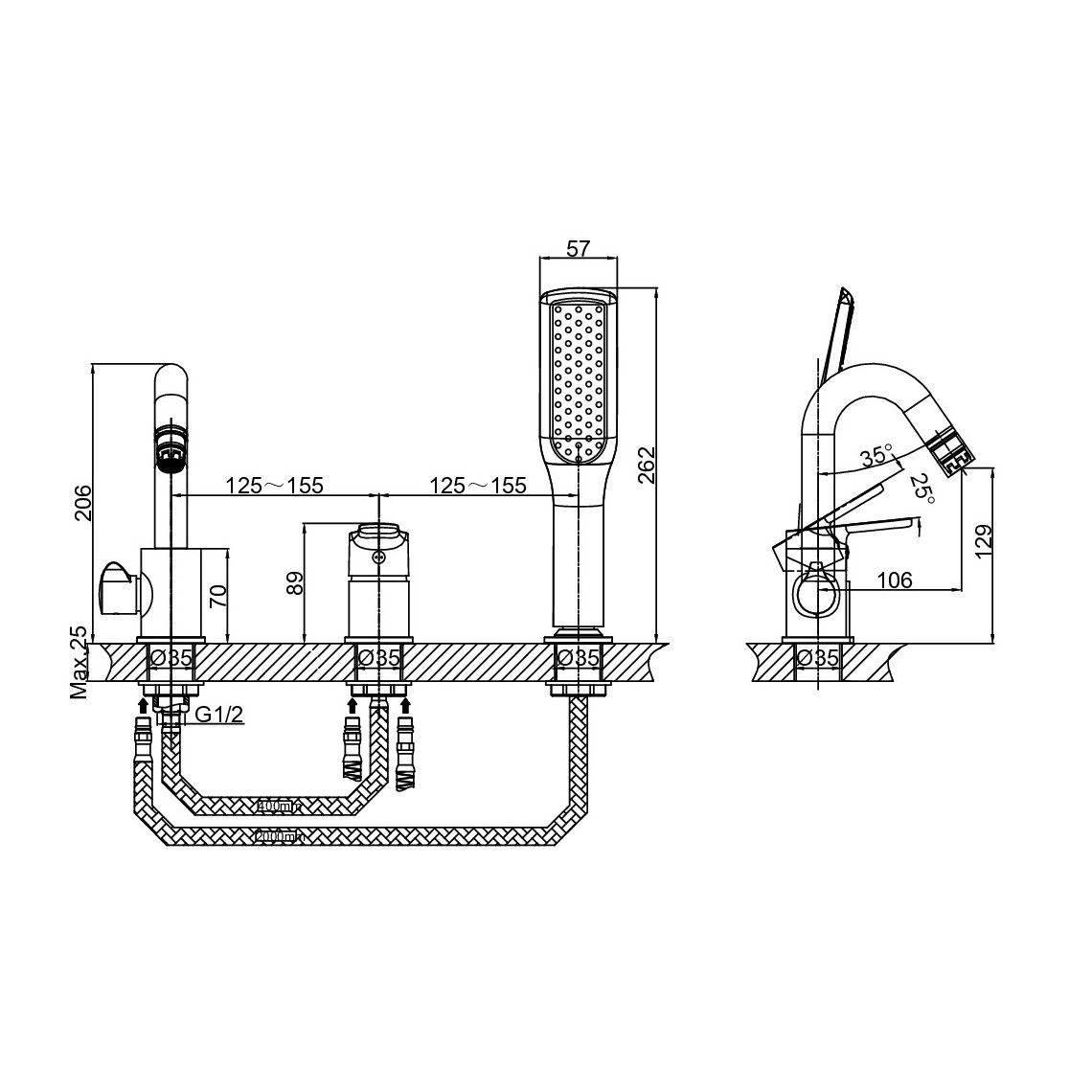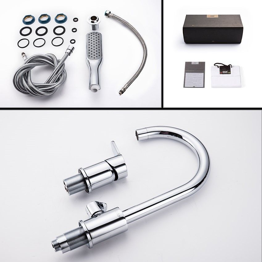 Смеситель, излив с дивертером (переключатель), крепёжная гайка-3шт, душевой шланг, соединительный шланг, душевая лейка, паспорт |