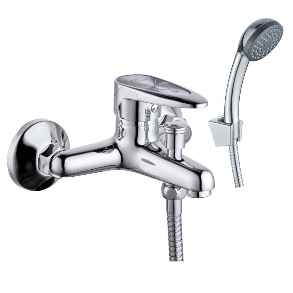 смеситель ванно-душевой с душевым гарнитуром и цветной ручкой (белая)