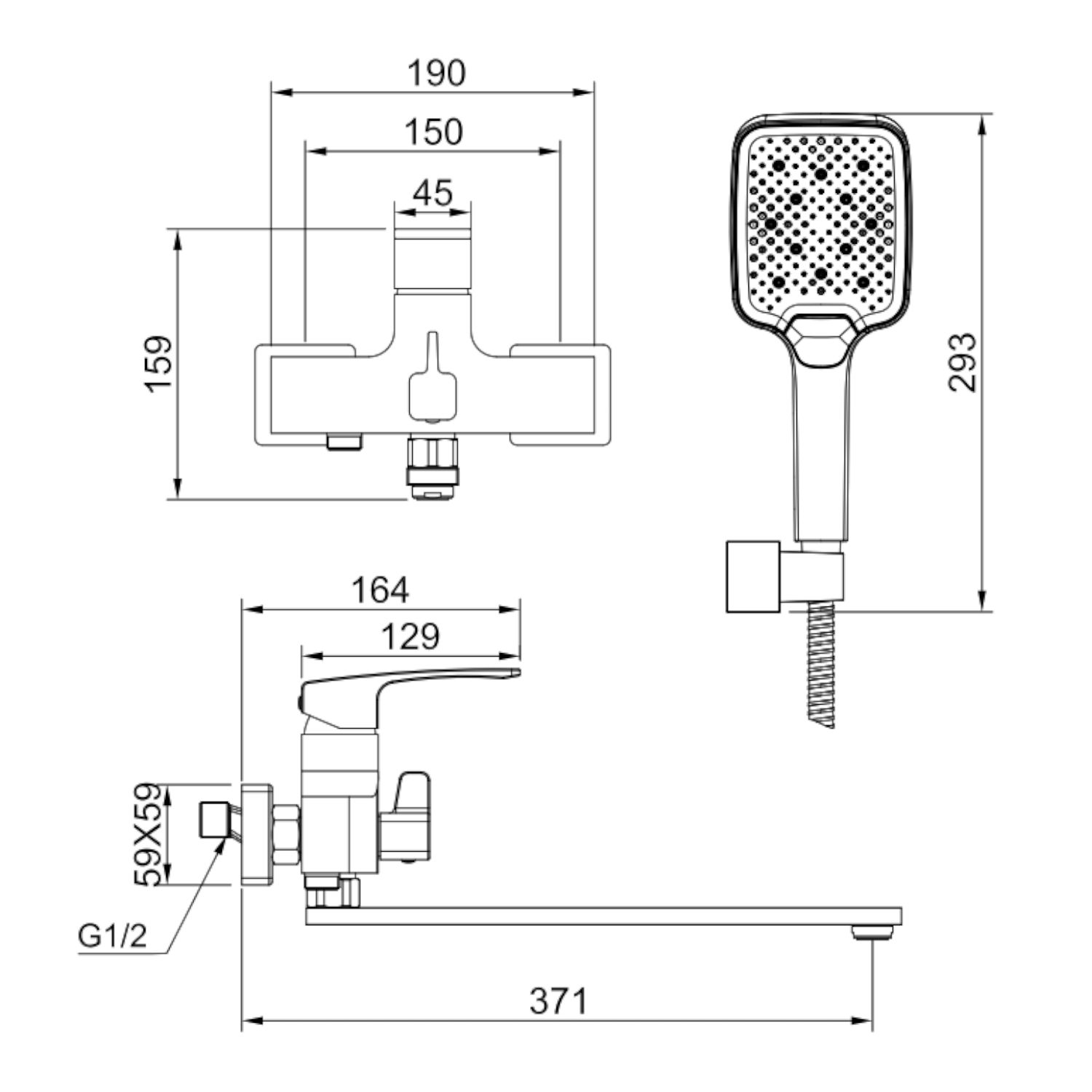 смеситель, шланг, душевая лейка, держатель душевой лейки, эксцентрики, отражатели |