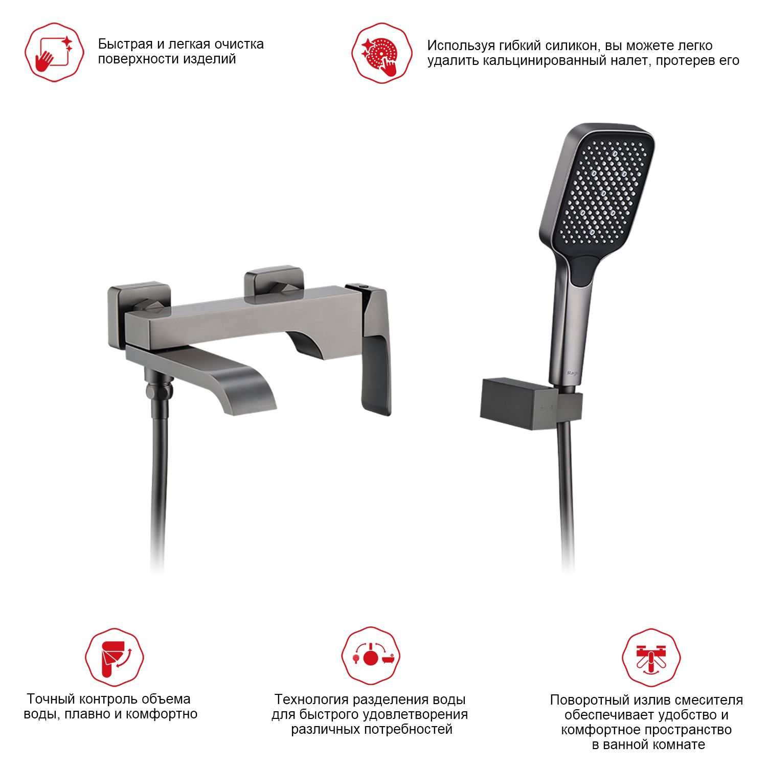 смеситель, шланг, душевая лейка, держатель душевой лейки, эксцентрики, отражатели |