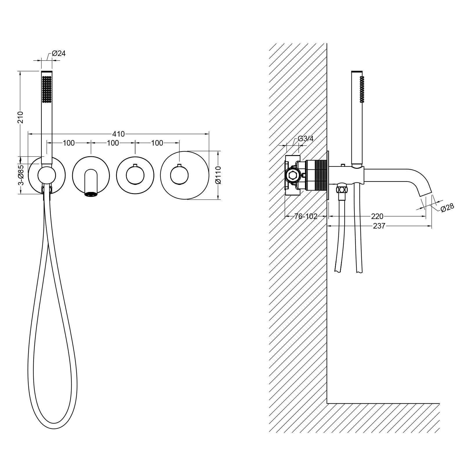 - Комплектация: смеситель, внутренняя часть, лейка, шланг