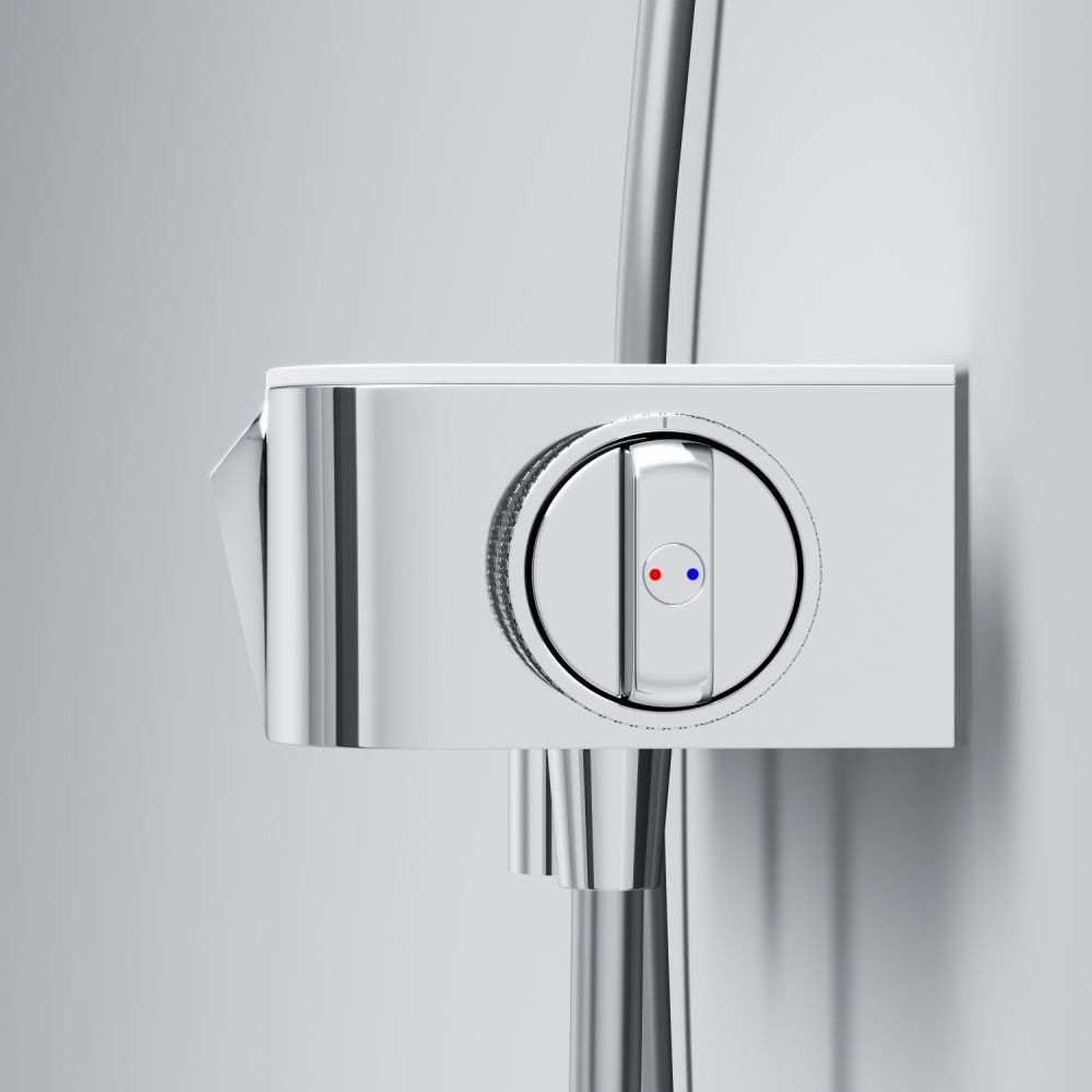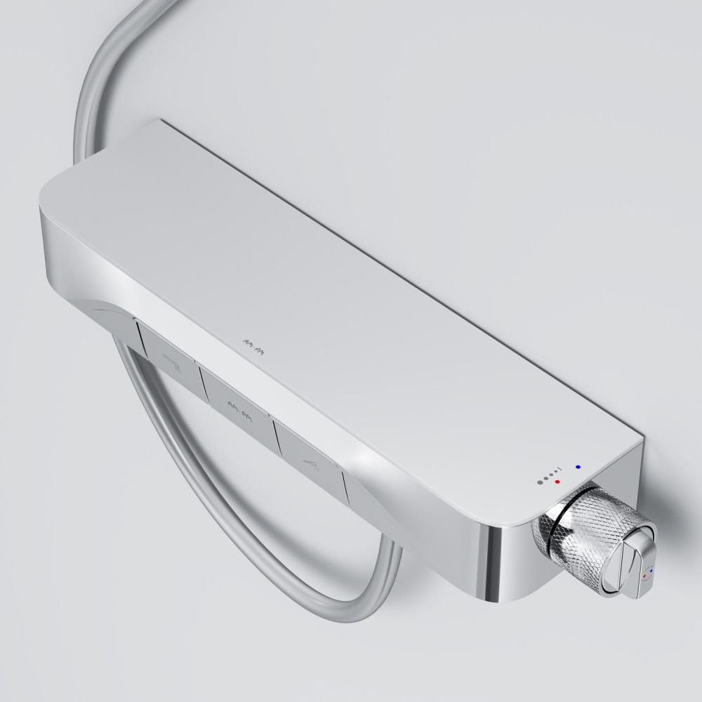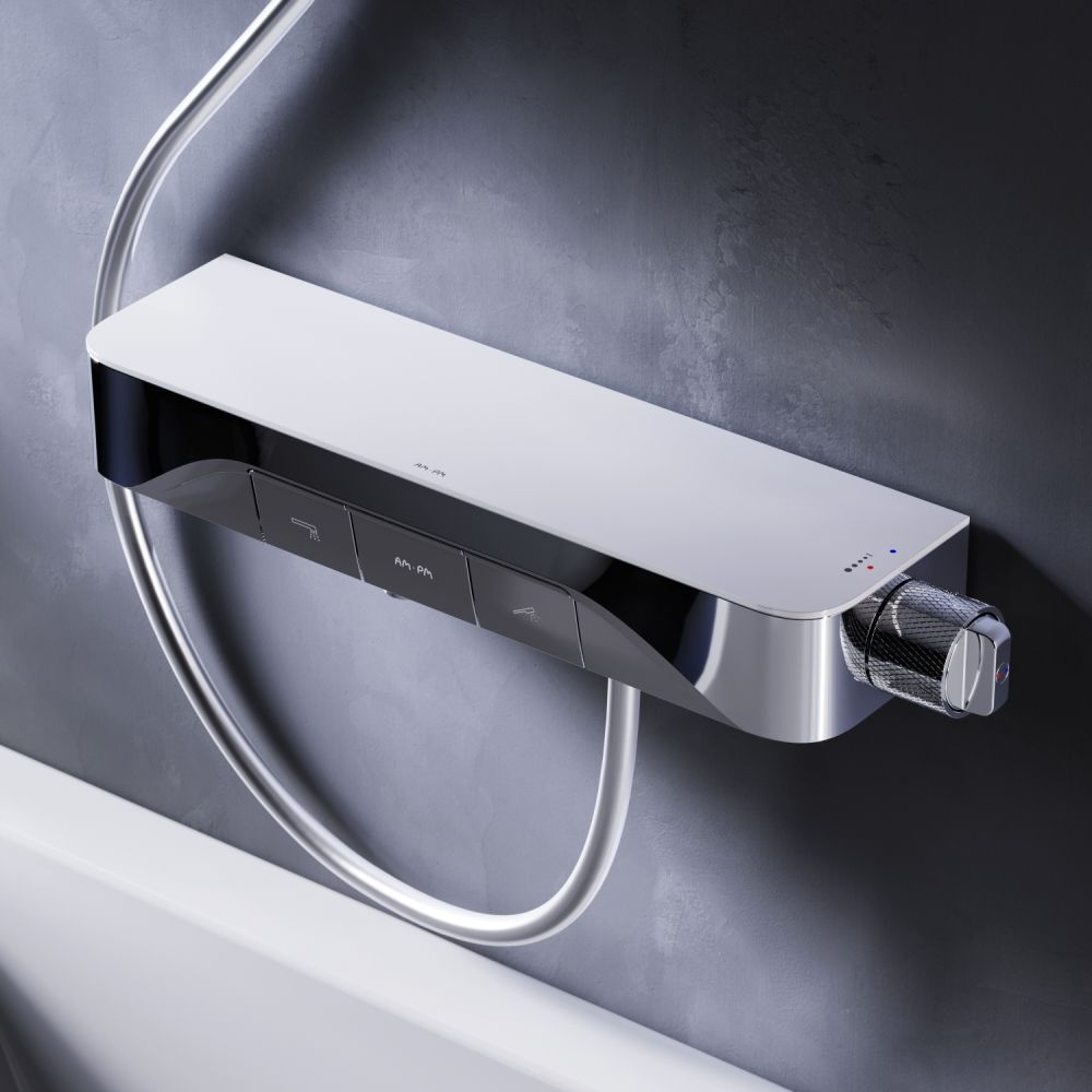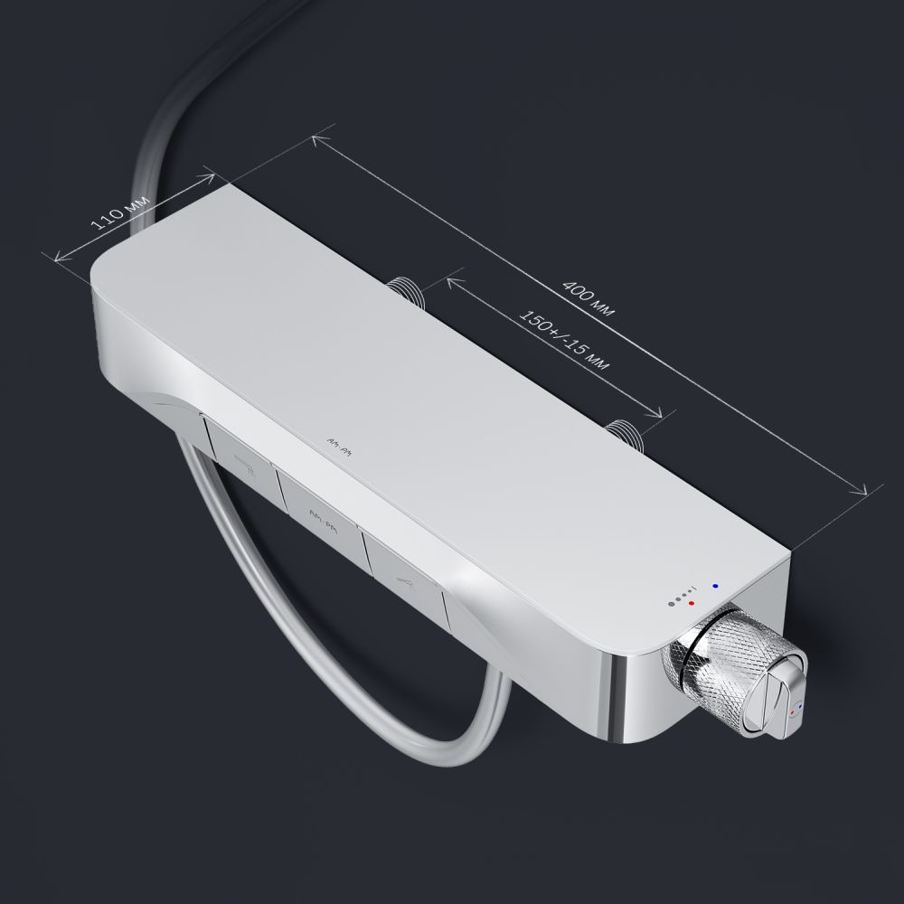 Интуитивно понятное управление: всего одна удобная ручка для настройки температуры и потока воды. Благодаря специально спроектированной эргономичной ручке вы можете управлять душевым смесителем даже с мыльными руками. Переключение потоков воды осуществляется нажатием клавиши. Комбинированный способ управления и вариативность функций делают смеситель одним из самых удобных на рынке. ""