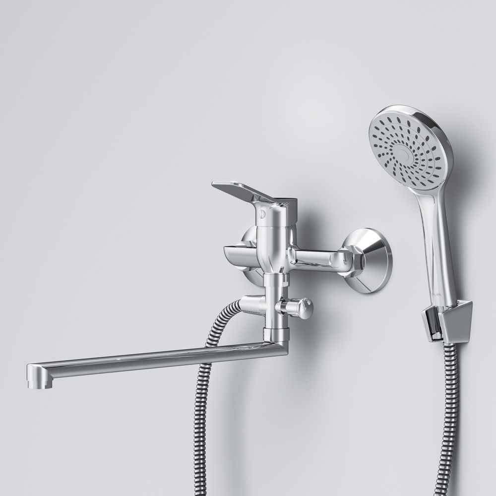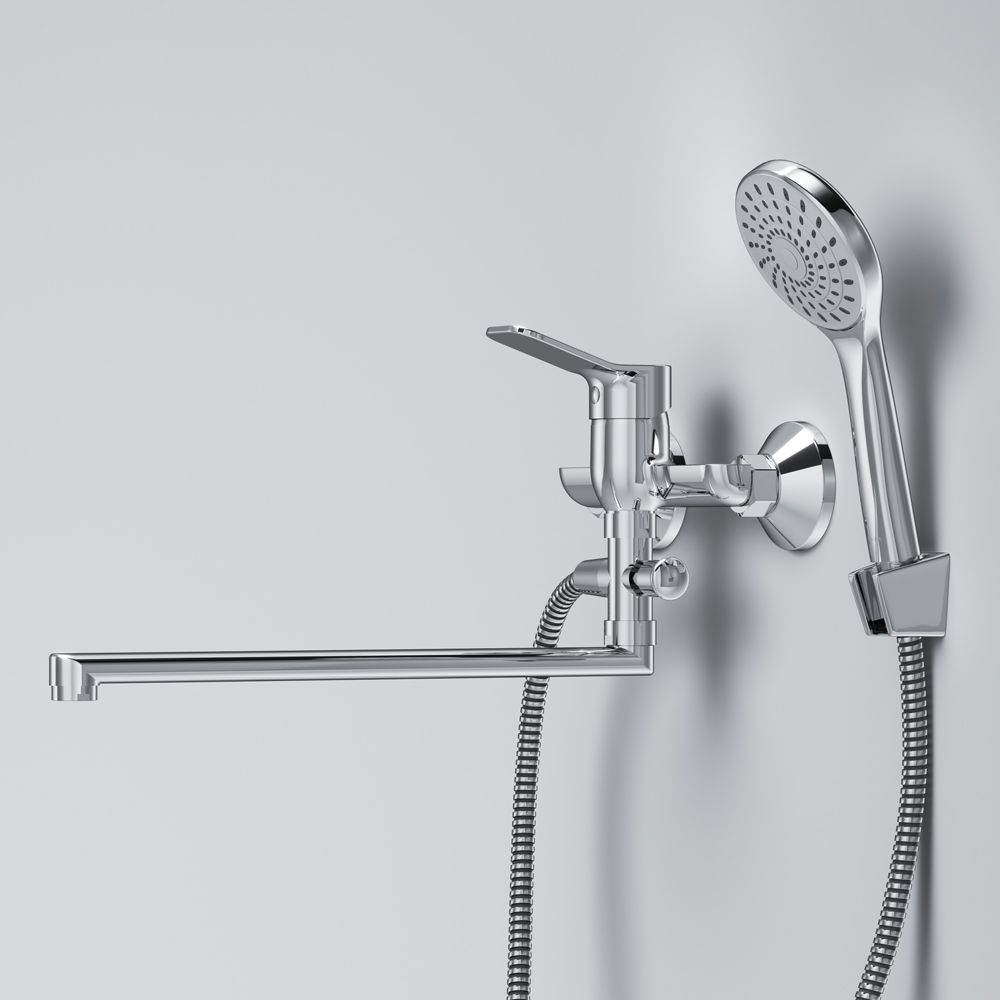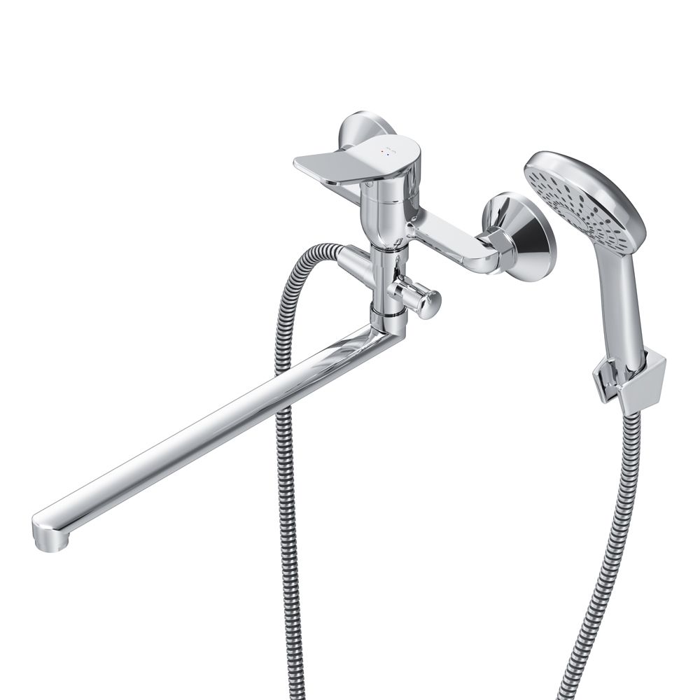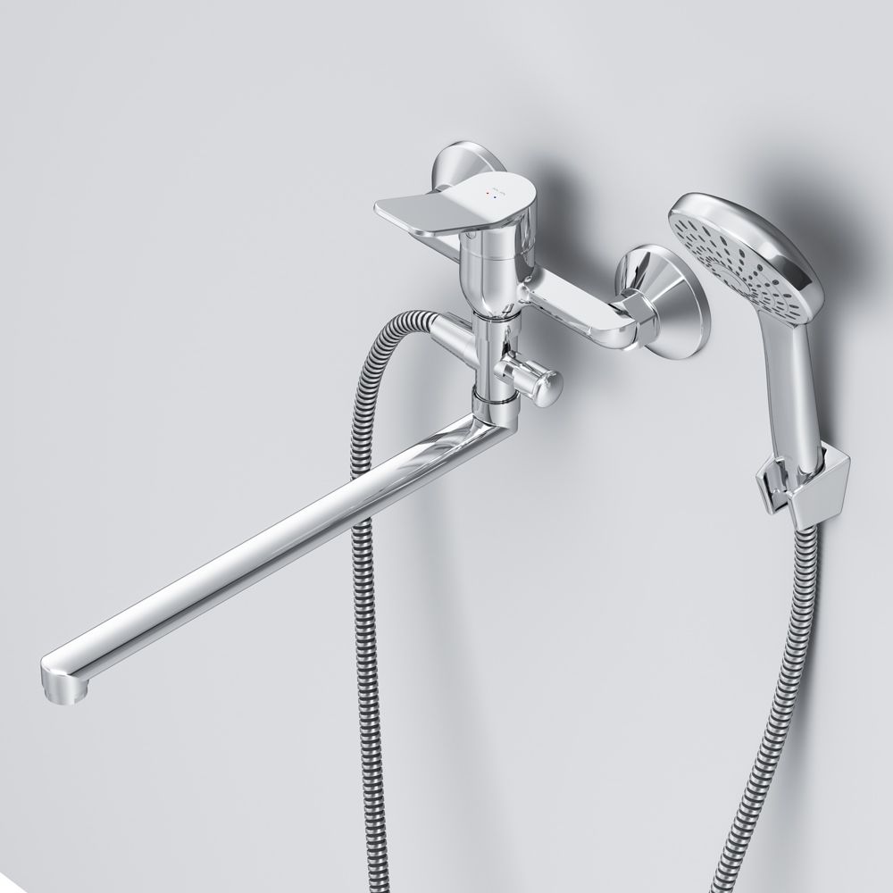 Универсальный длинный излив позволяет использовать смеситель как для ванны так и для рядом стоящей раковины. Функциональный держатель для ручного душа на два положения добавит удобства использования.